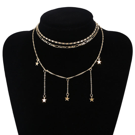 Fashionable Small Disc Pendant Multi-Layer Necklace