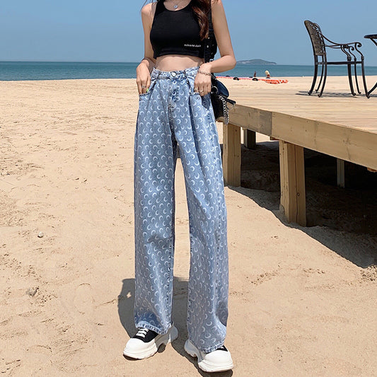 Printed Loose And Slim Straight-leg Pants