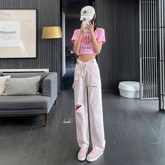 Jeans High-Waisted Straight-Leg Jeans Spring Cropped Trousers