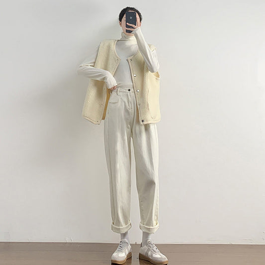 High-waisted Jeans Straight Loose Wide-legs Were Thin