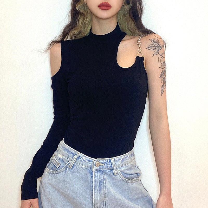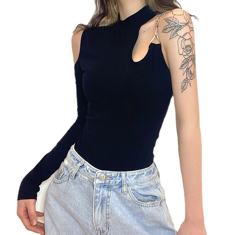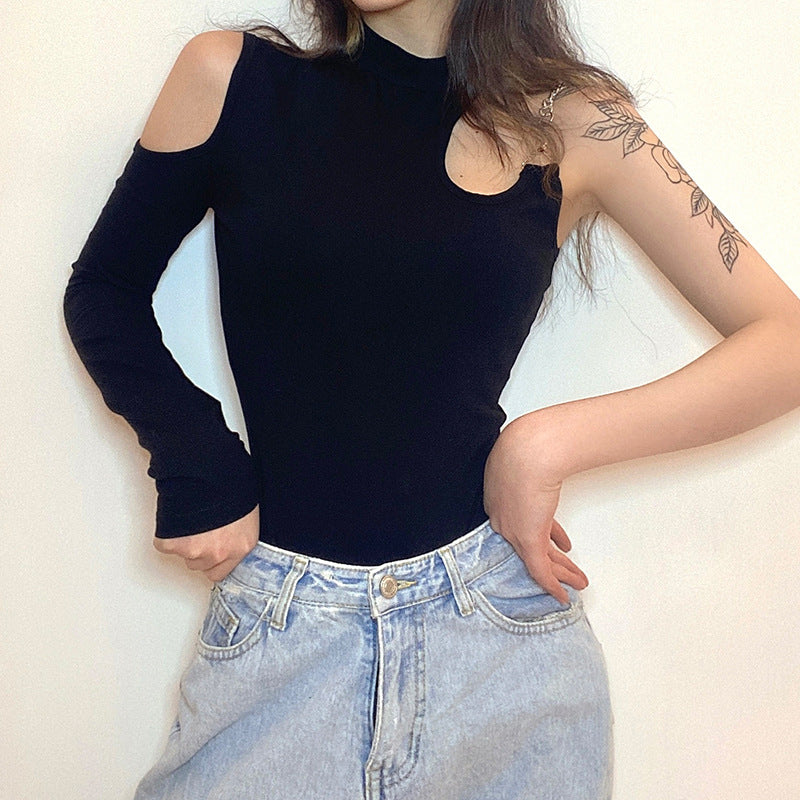 Asymmetric Half Sleeve Crew Neck Slim Bodysuit