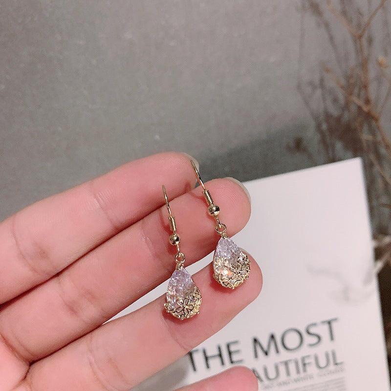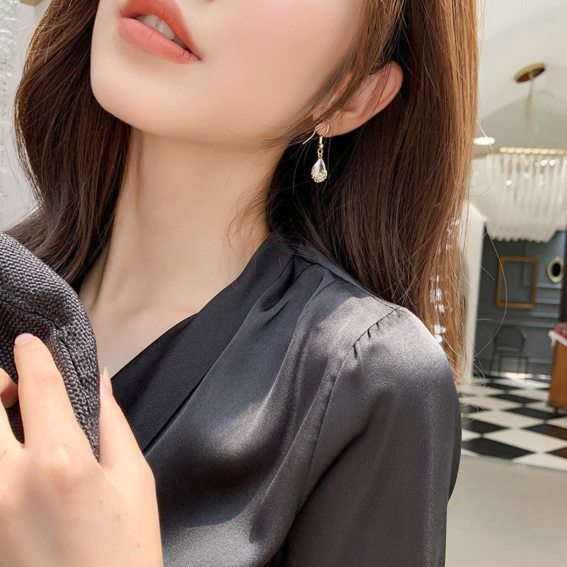 Color: ear hook-golden drop crystal earrings, ear hook-silver drop crystal earrings