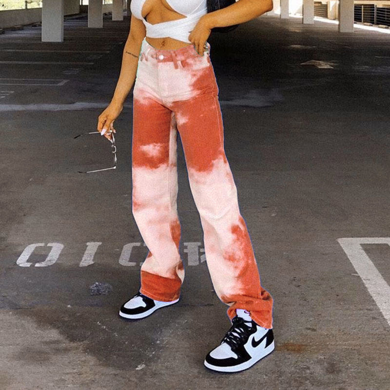 Blue Sky And White Clouds Casual Street Shooting High Waist Straight Pants