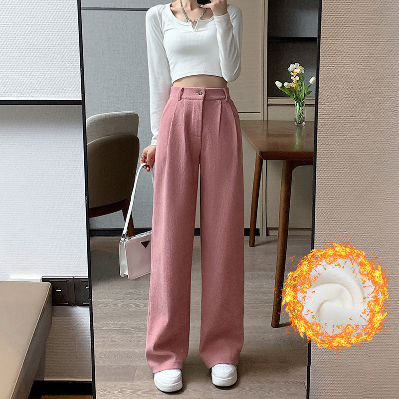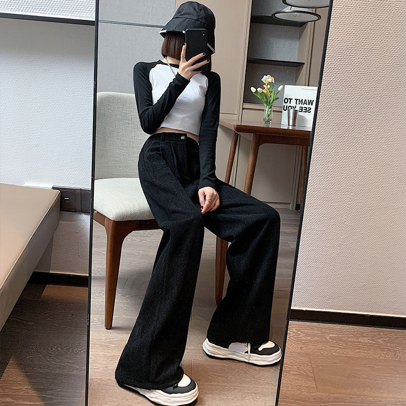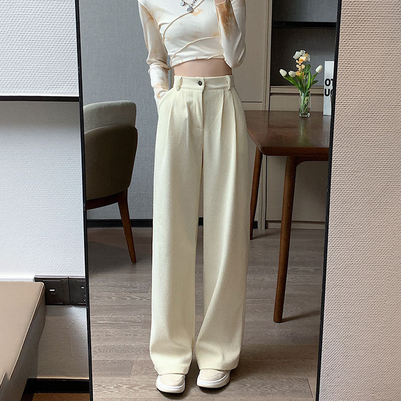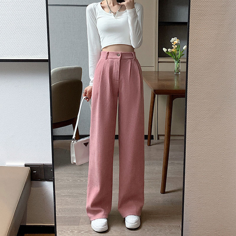 Corduroy Wide Leg Pants High Waist Loose Straight Pants