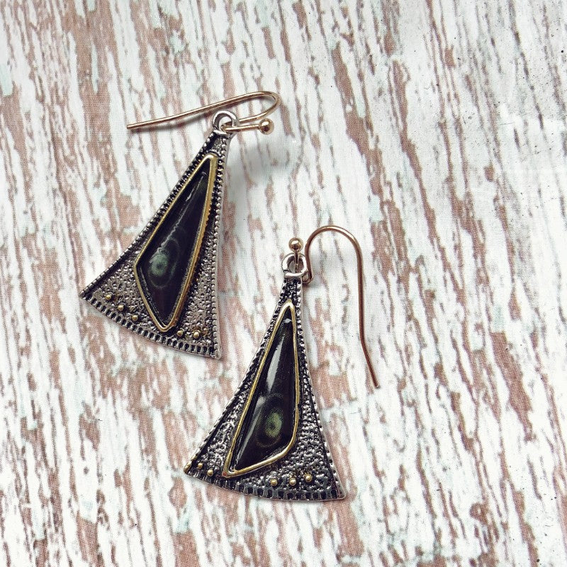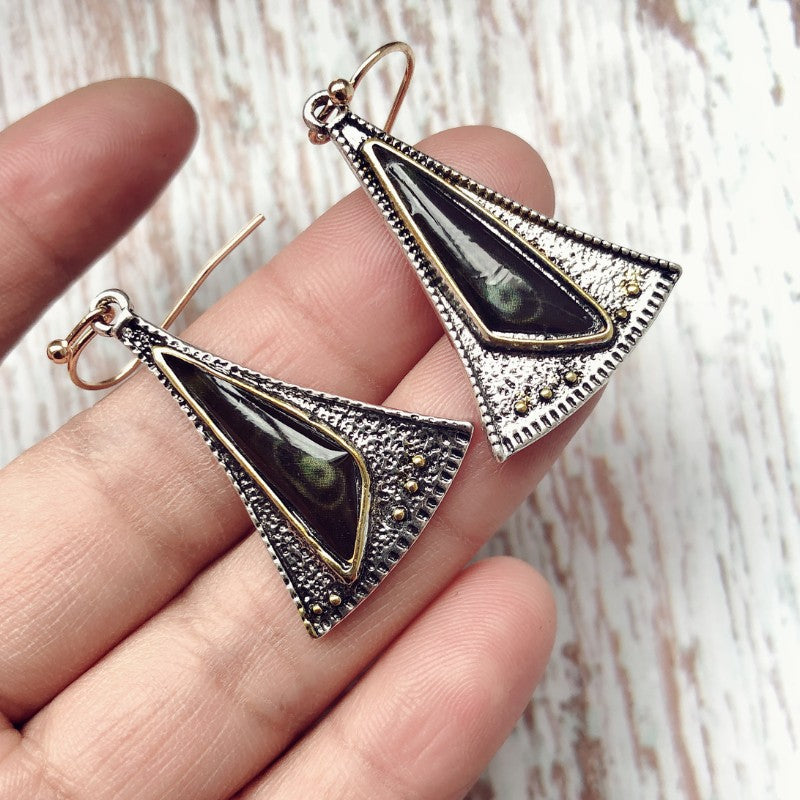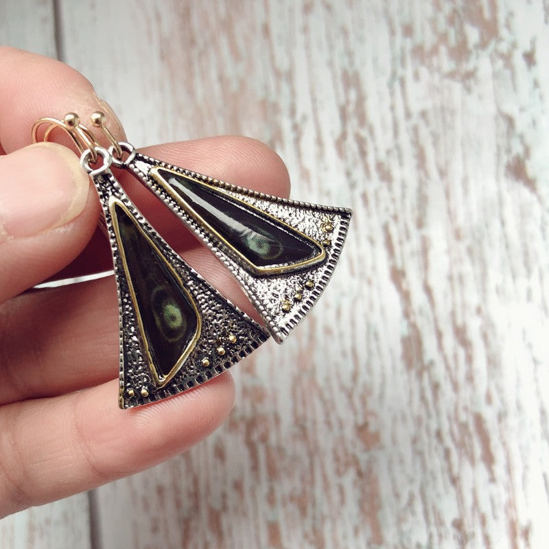 Creative triangle fan-shaped colored glass earrings