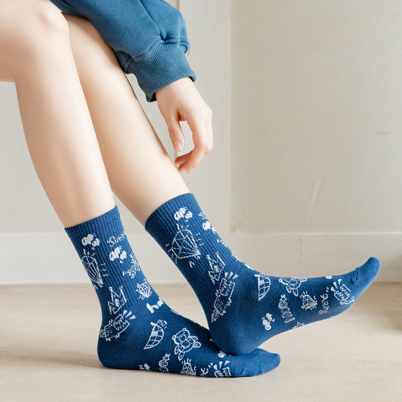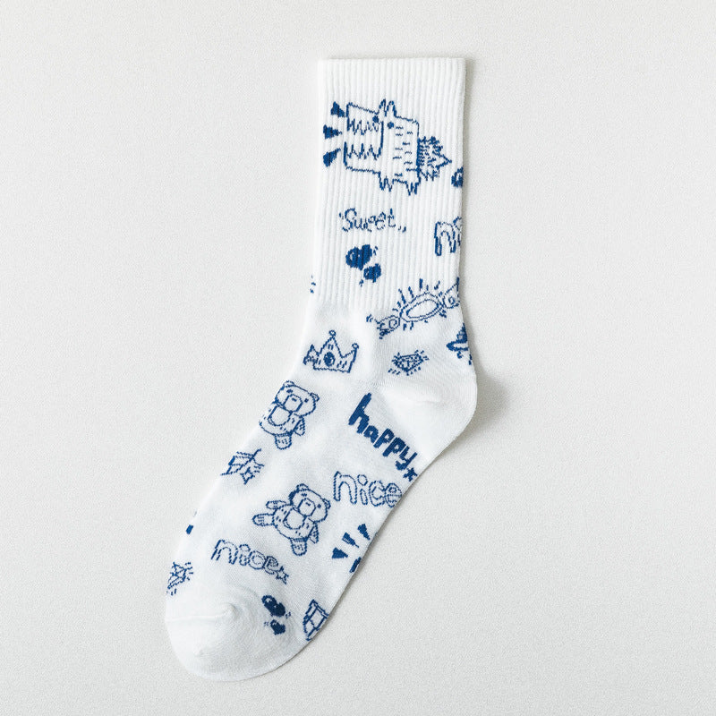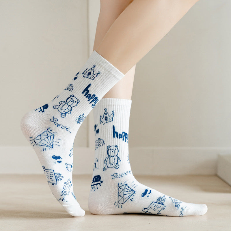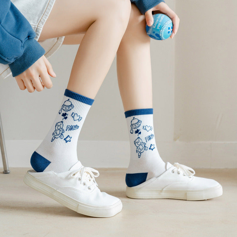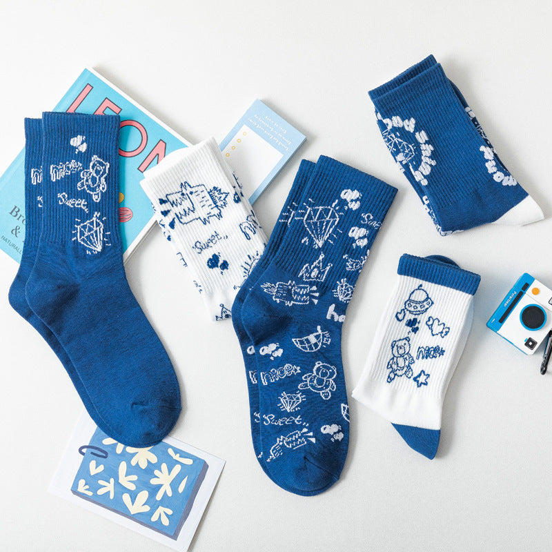 Cute Cartoon Student Blue Series Socks