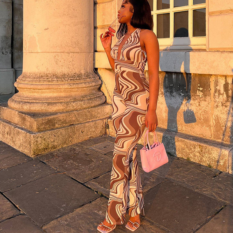 V-neck Halter Jumpsuit Hip Lifting Slim Fitting All-in-one Pants