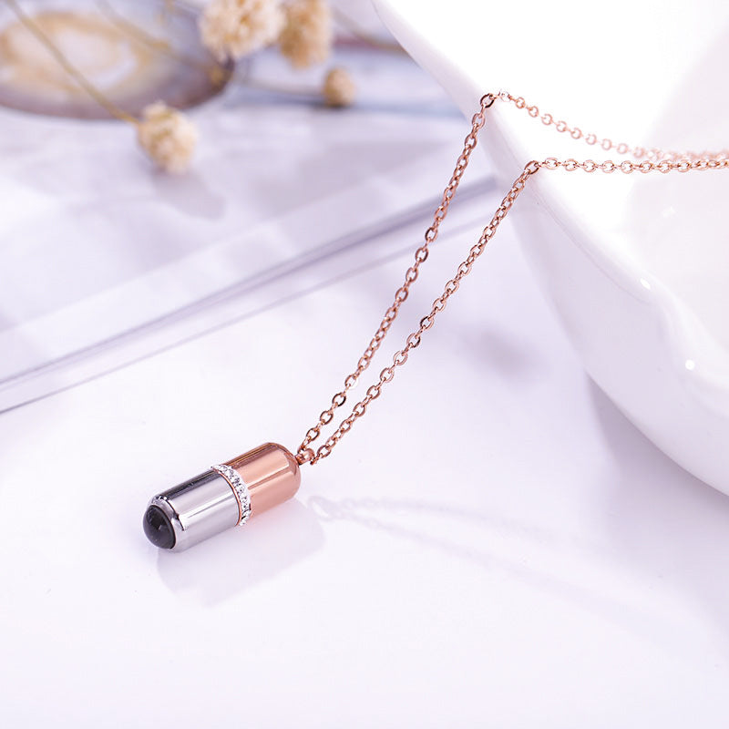 Double Color 100 Languages Projection Clavicle Chain Valentine's Day Gift Necklace