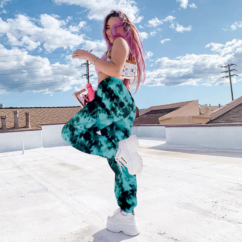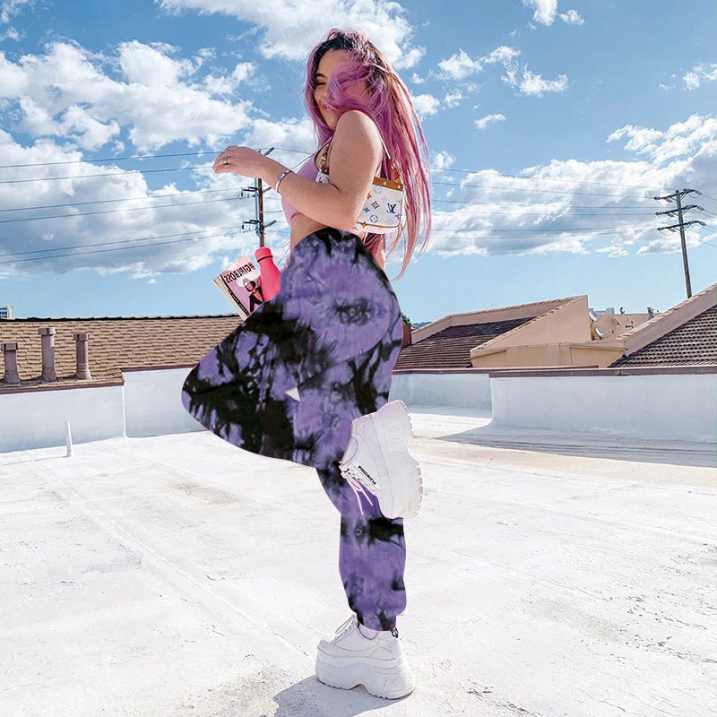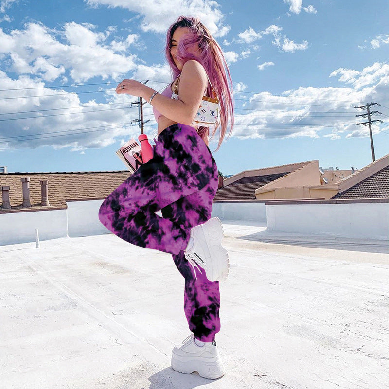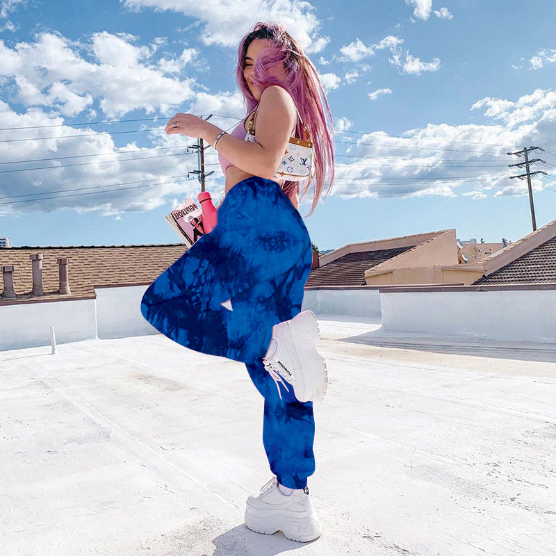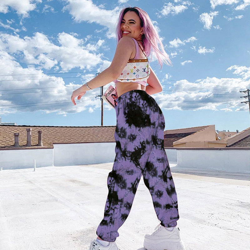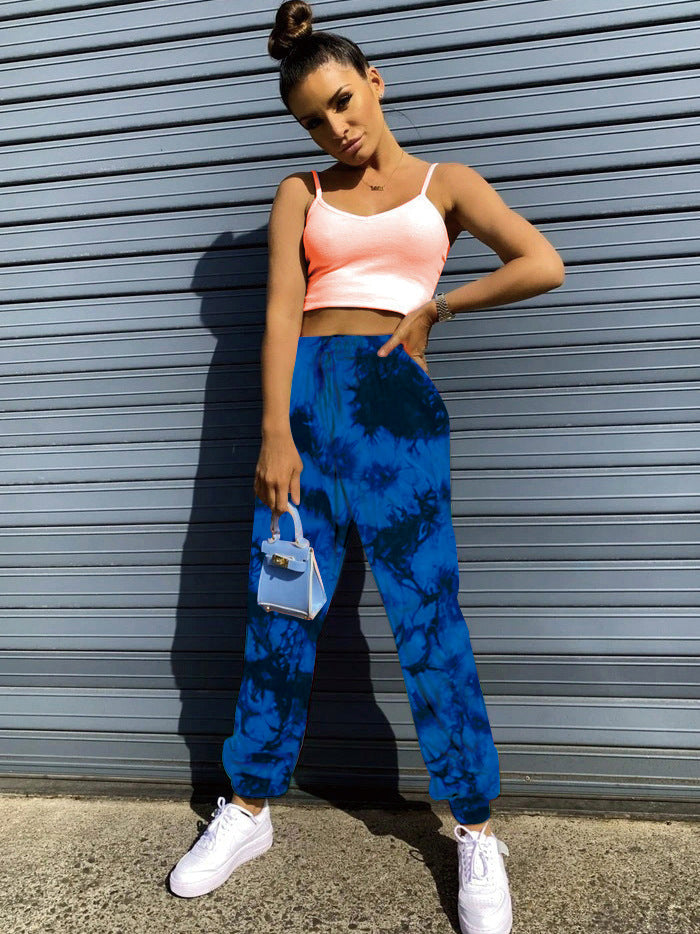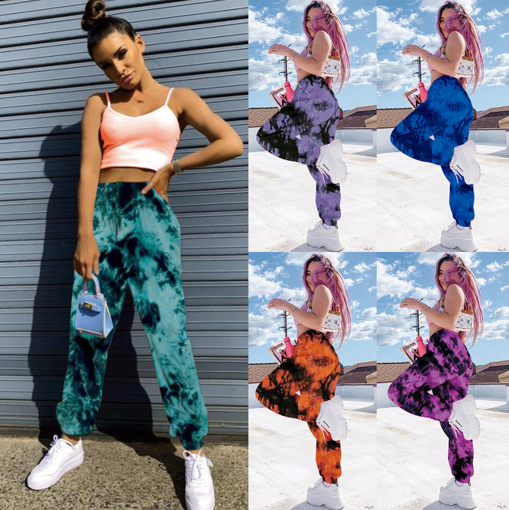 Elastic Tie-dye Rainbow Color Thin Casual Street Shooting Trousers