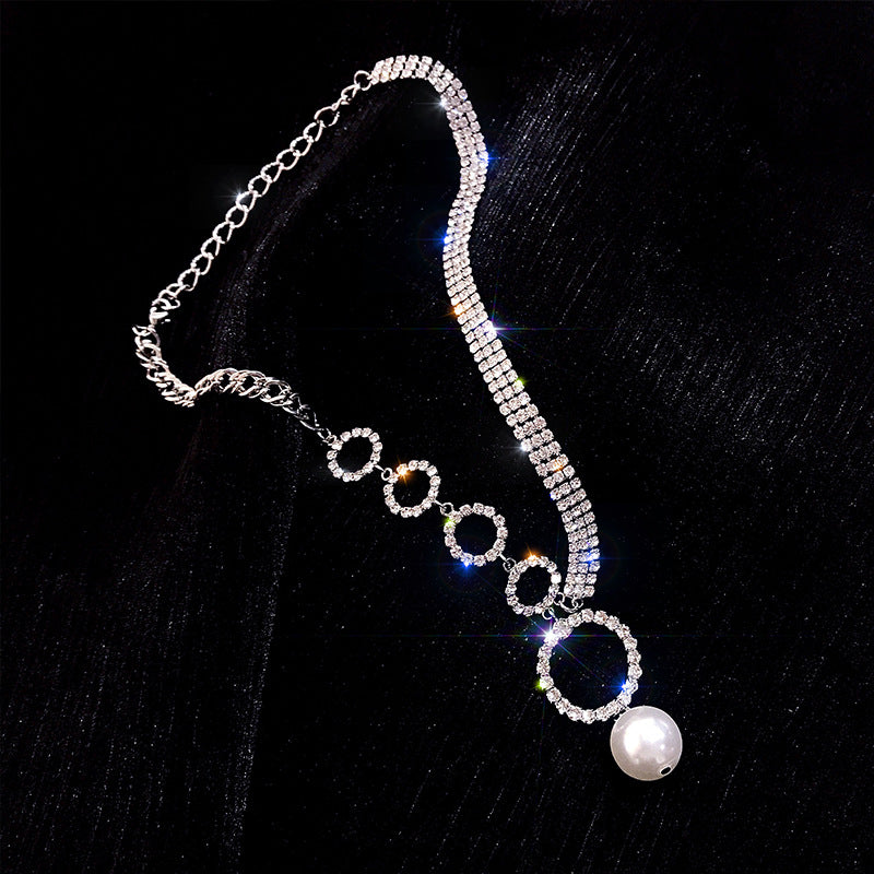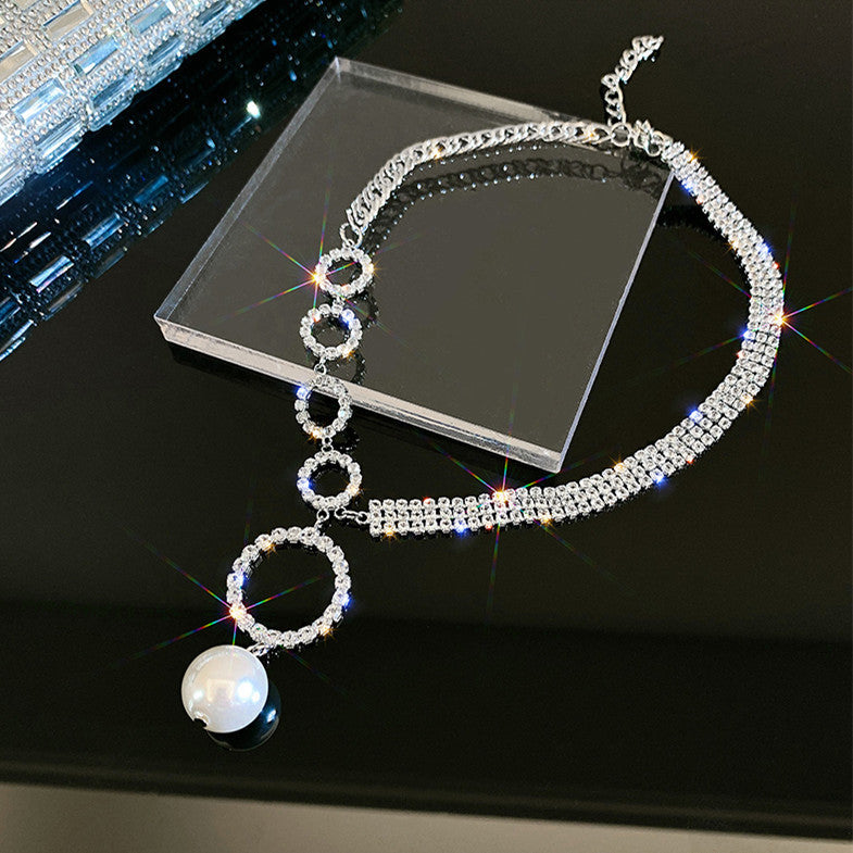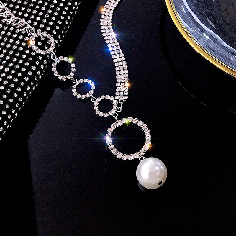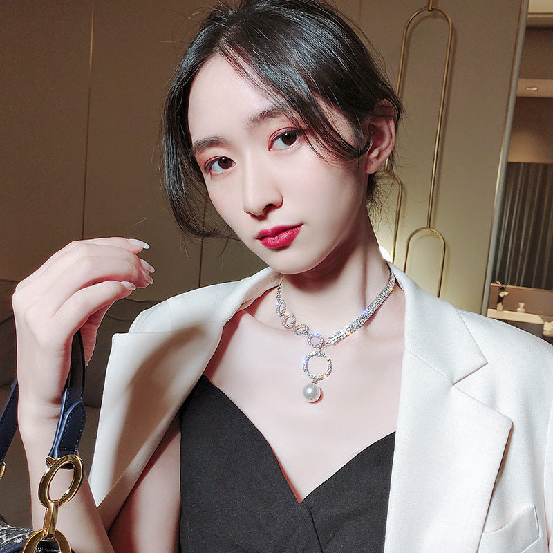 Temperament Full Diamond Ring Pearl Necklace