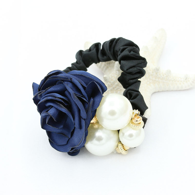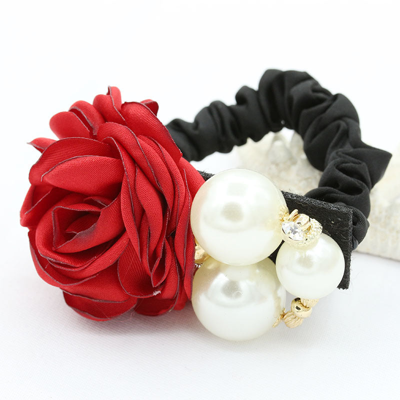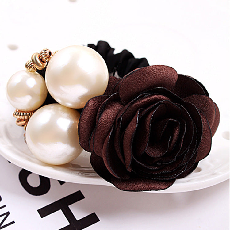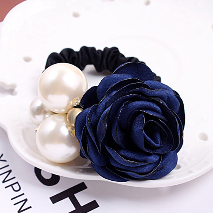 Fashion Big Pearl Rose Flower Hair Tie Camellia Head Rope