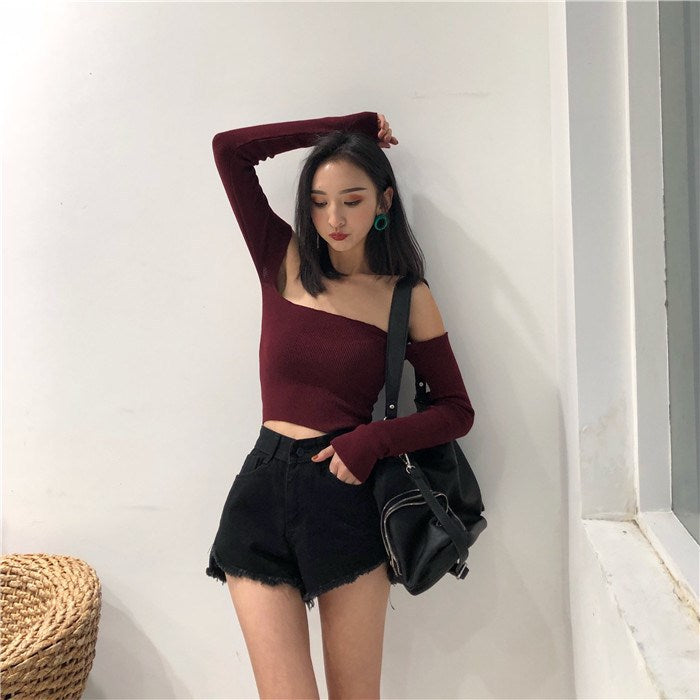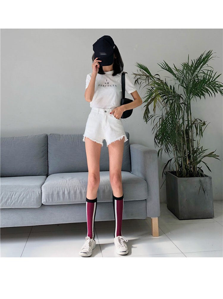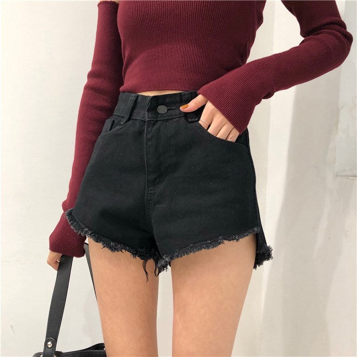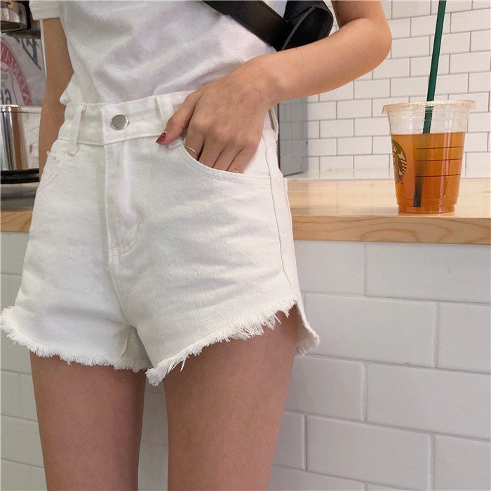 High Waist Simple Loose Frayed Wide Leg Shorts