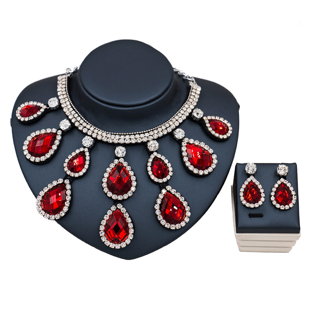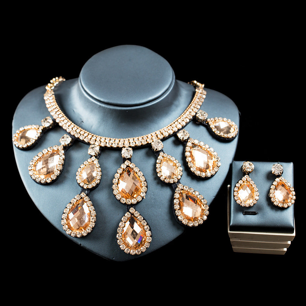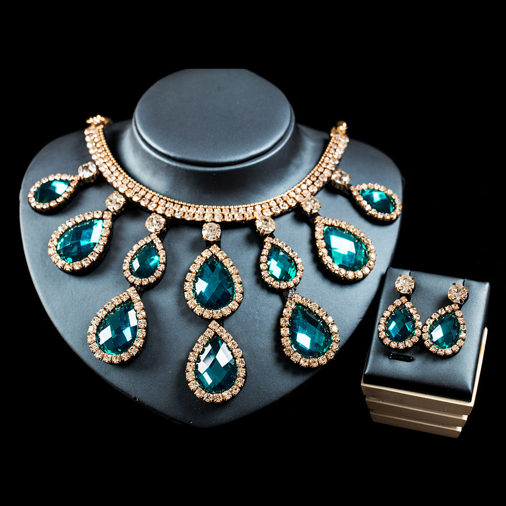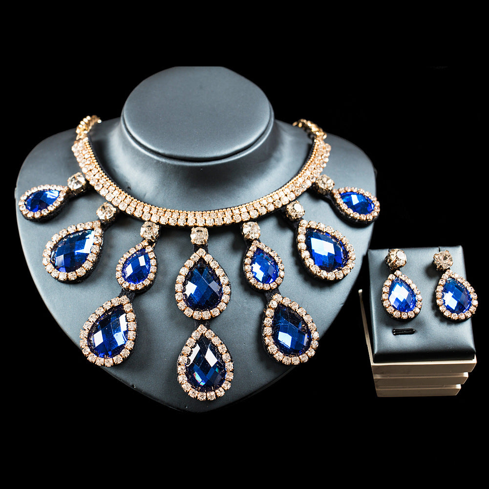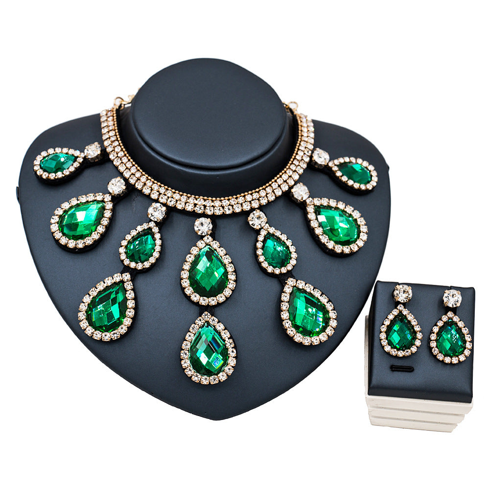 Fast selling explosion, Middle East, Europe and America, colorful exaggerated bride necklace, earring set, cross border high quality goods supply