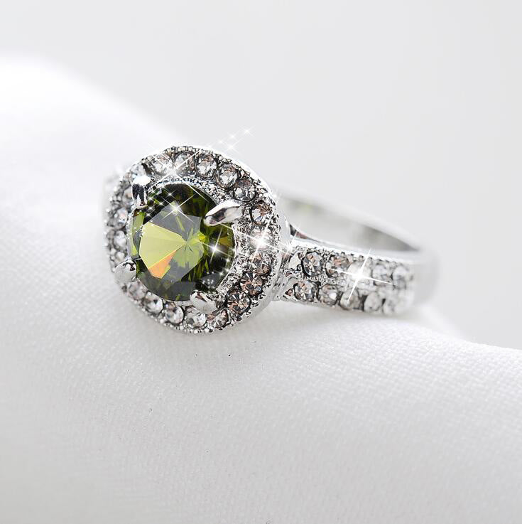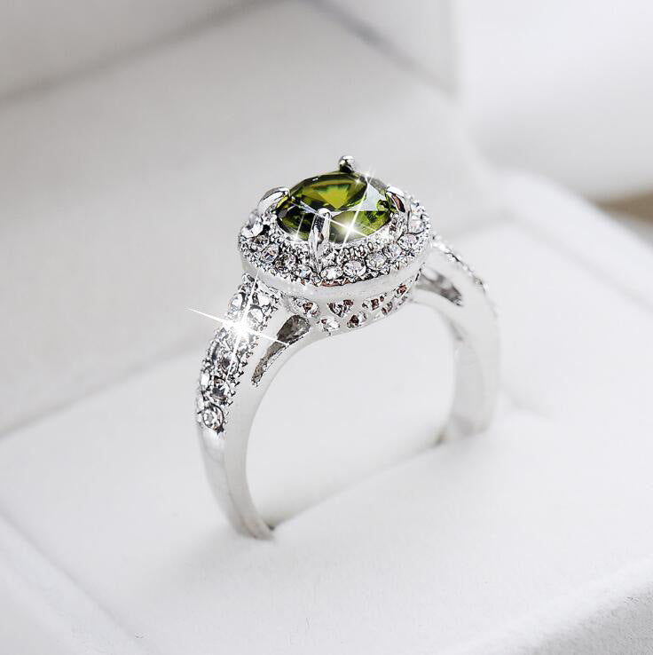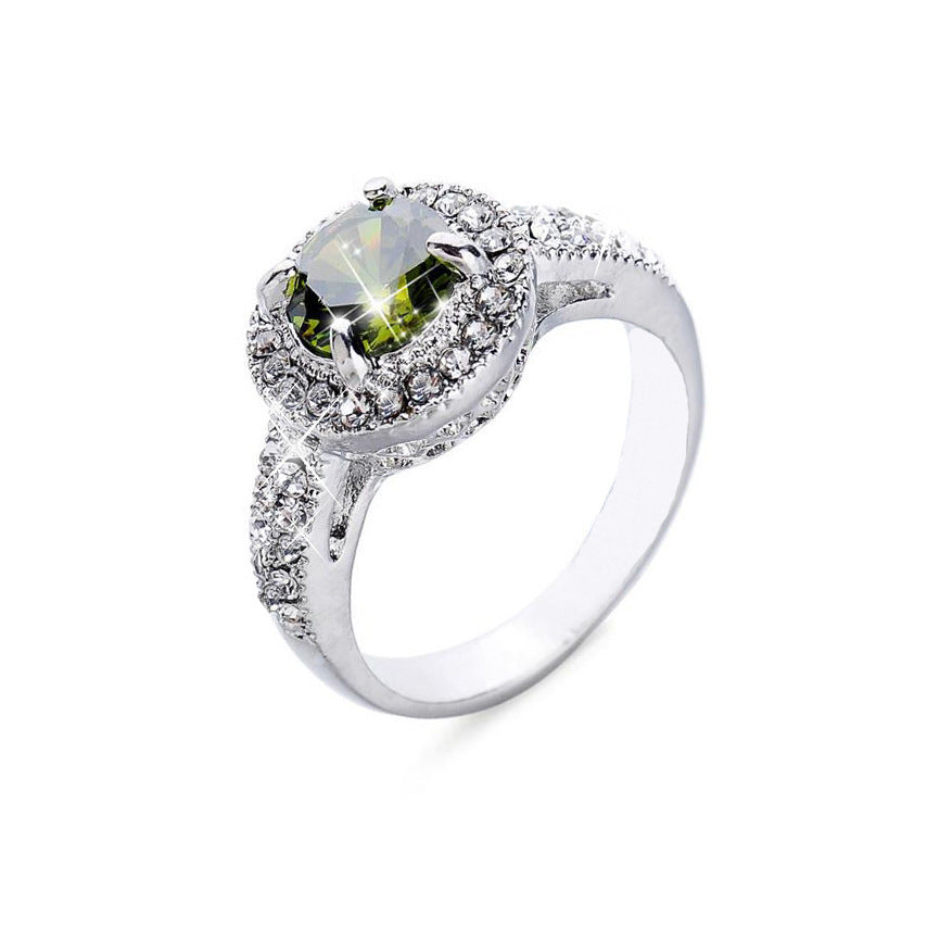 Flow Diamond Gemstone Crystal Green Zircon Ring
