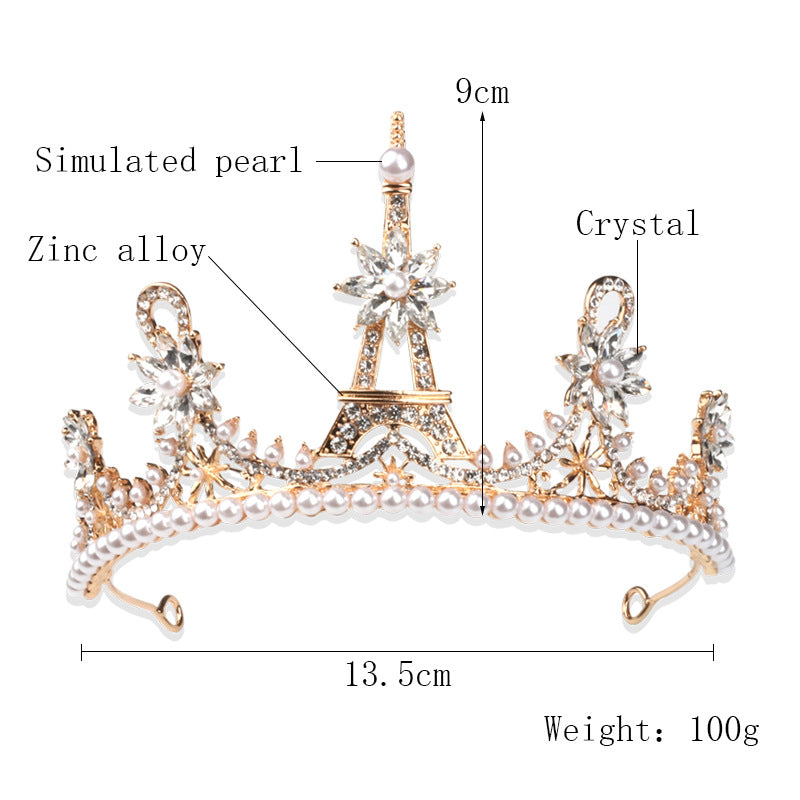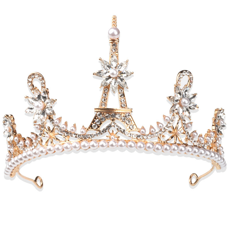 Golden Crown Eiffel Tower Rhinestone Flower Crown