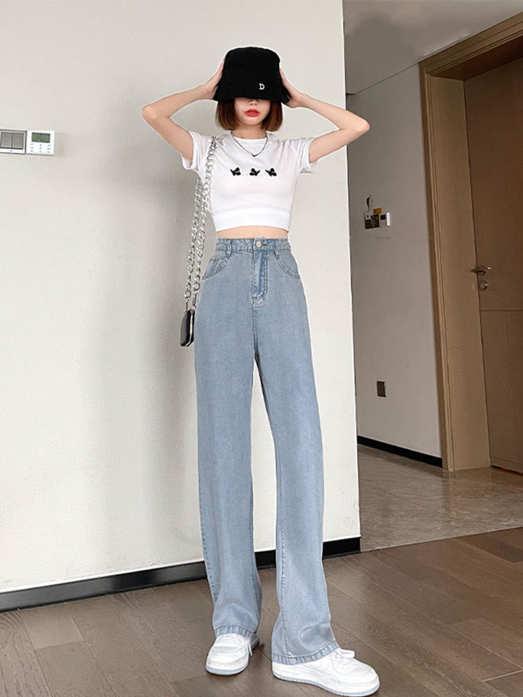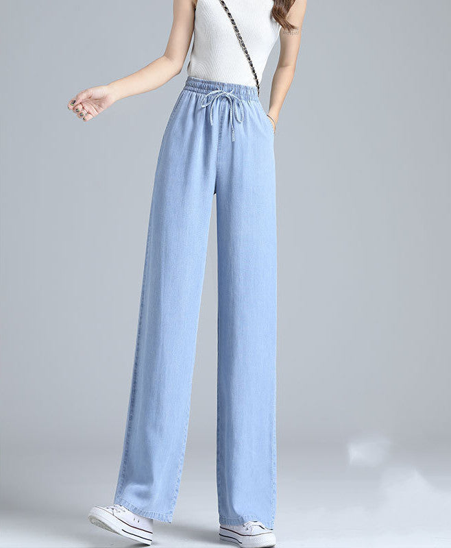 High Waist Draped Straight Loose Ice Silk Wide-leg Pants