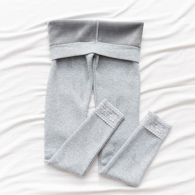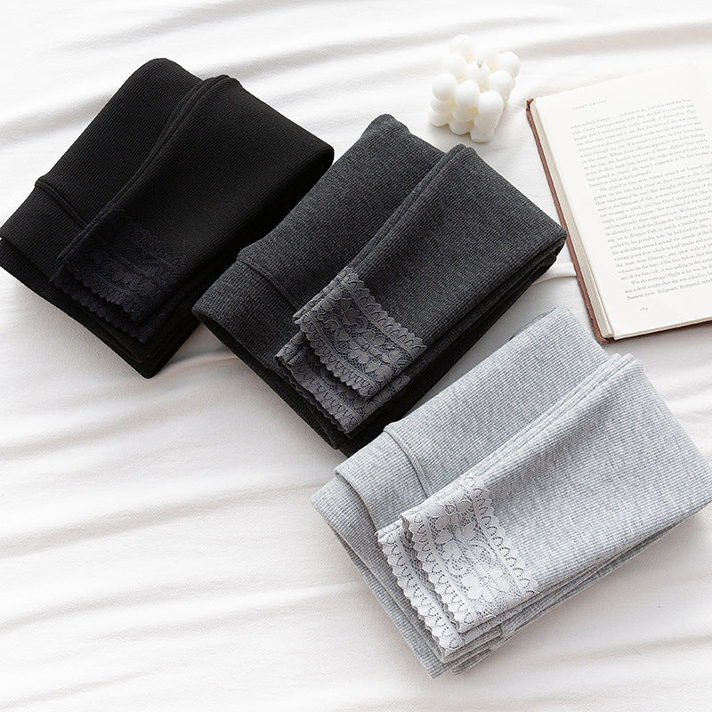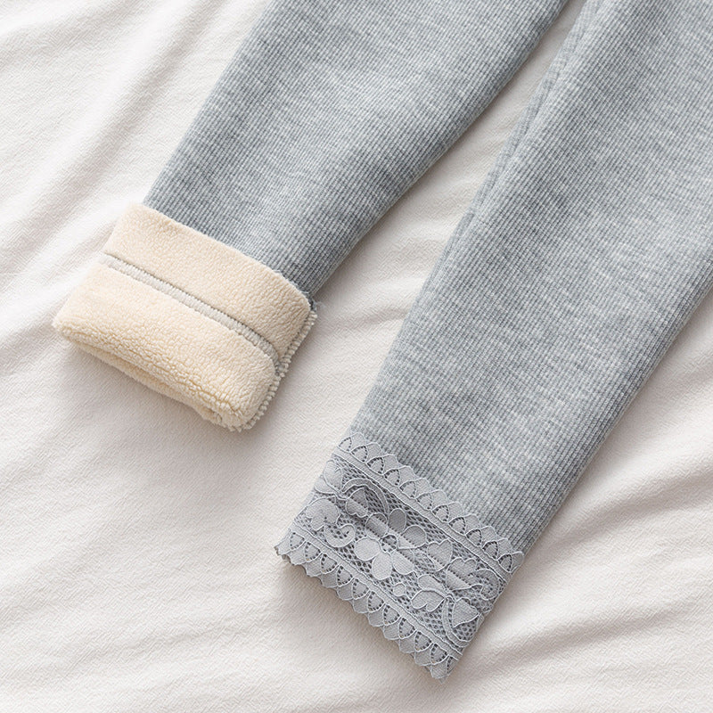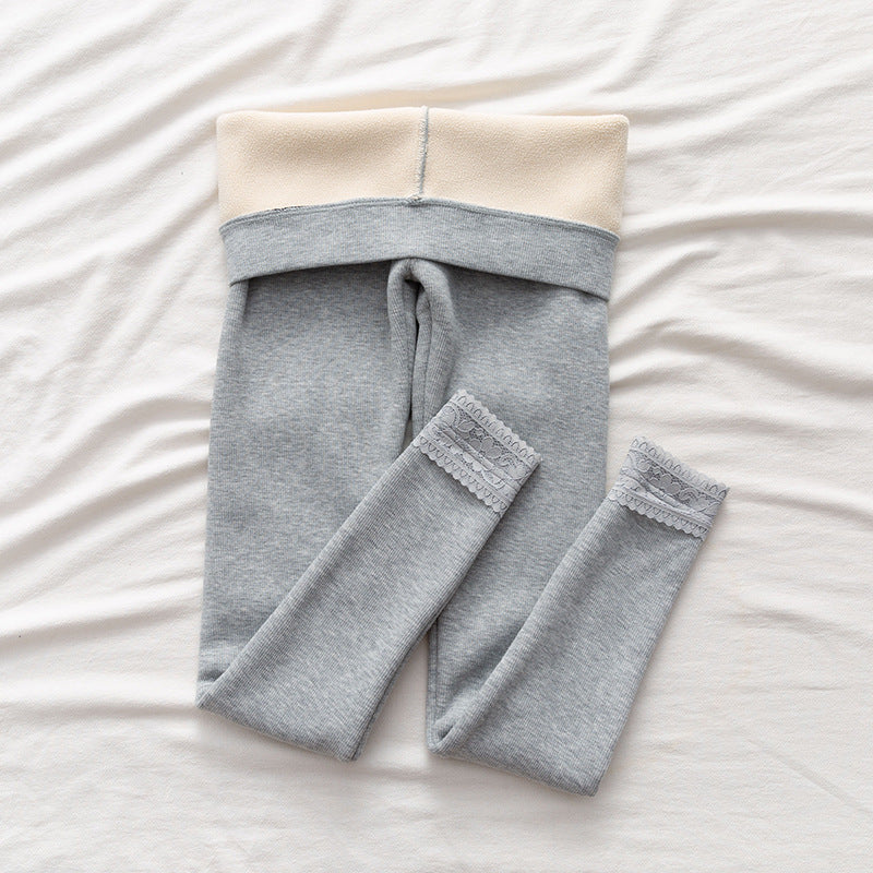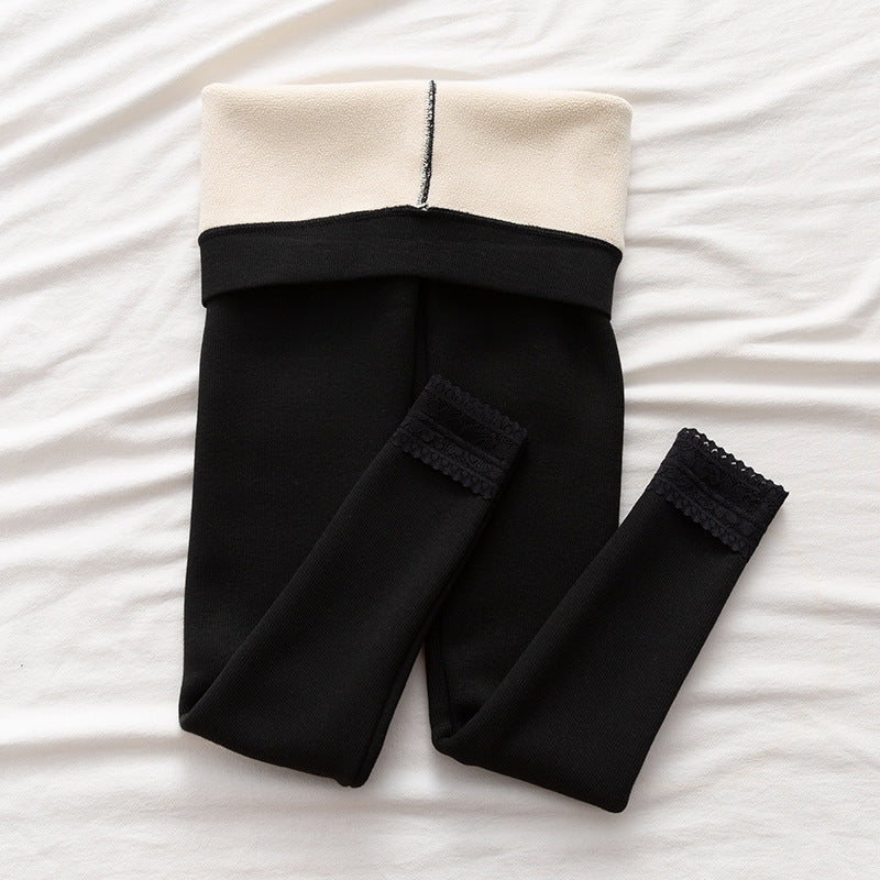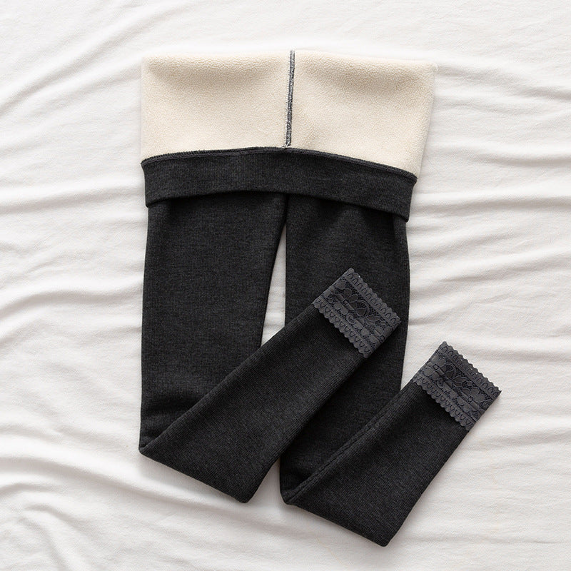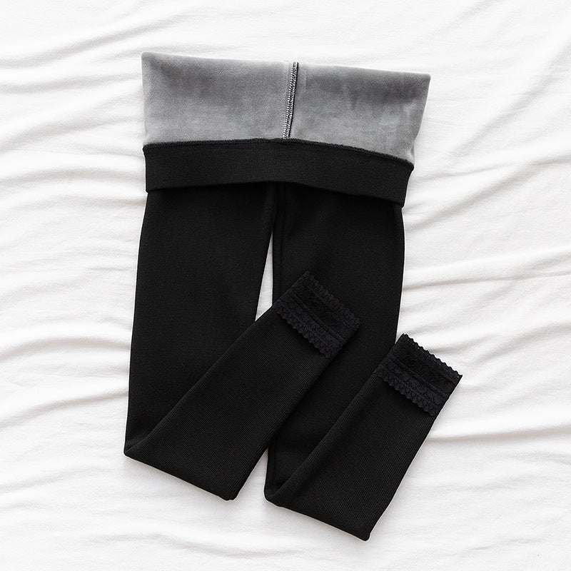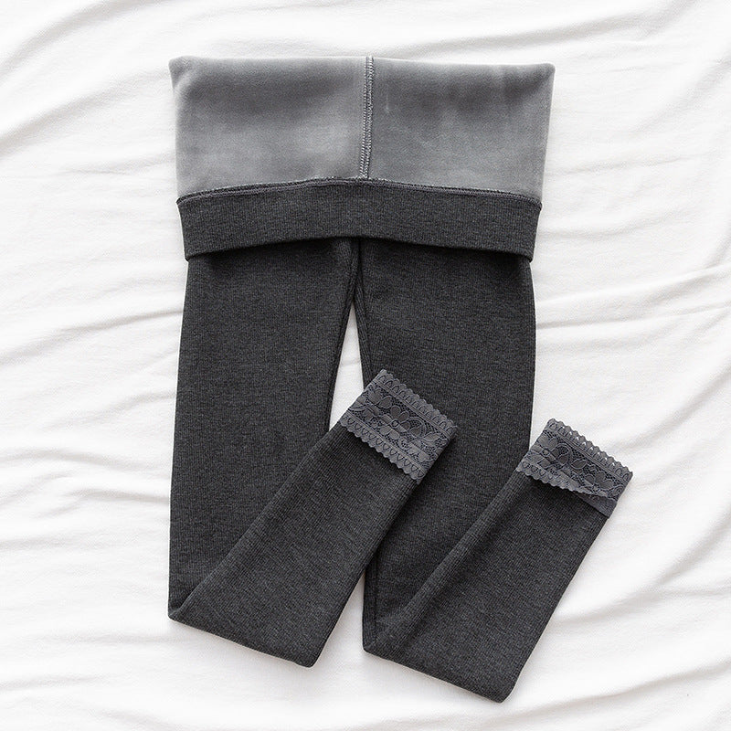 High-waisted Threaded Slim-fitting Thickened Warm Leggings