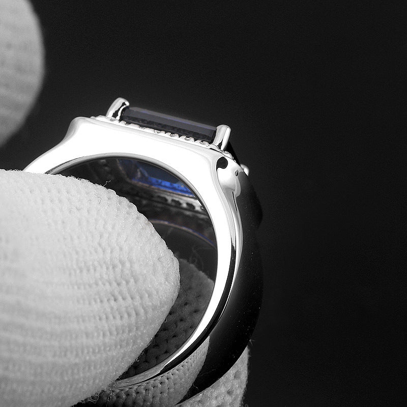 Inlaid sapphire live mouth ring