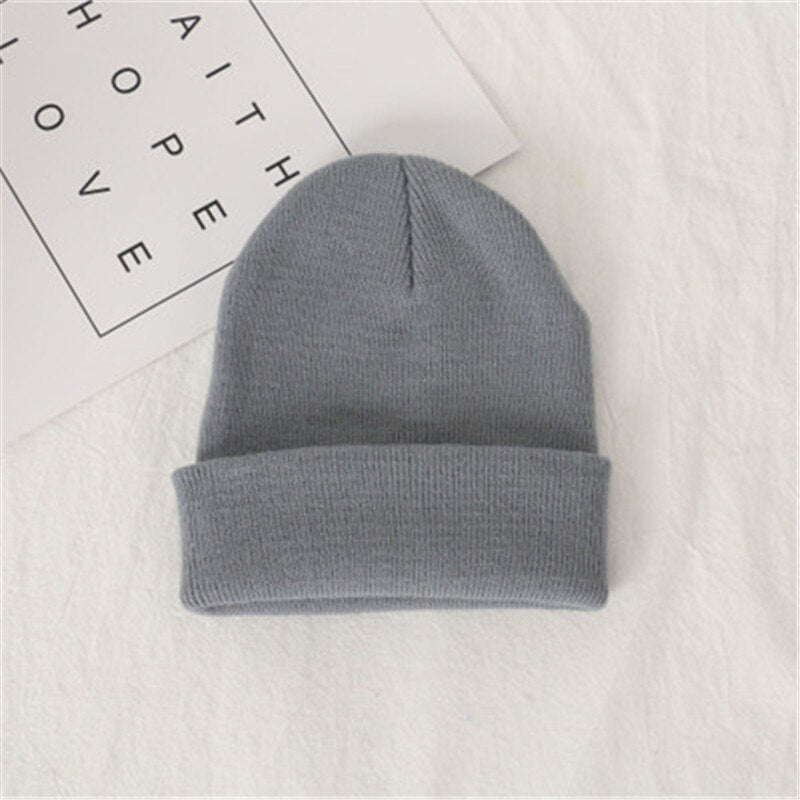 Winter knit and cuff design, melon shape, solid color, multi-color options.