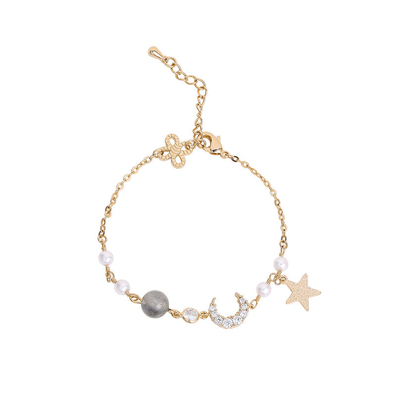 Material: bright pearl/zircon/acrylic/copper (plated real gold)