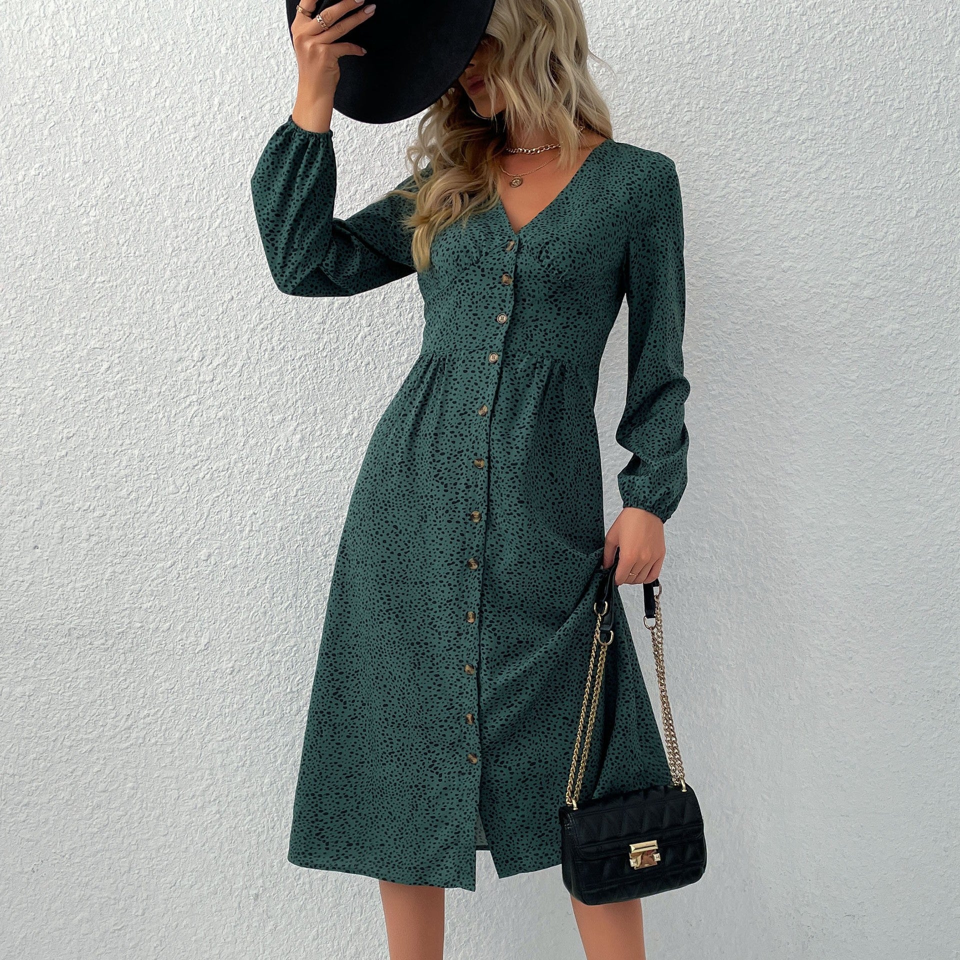 Long Sleeve Leopard V-Neck Cardigan Dress