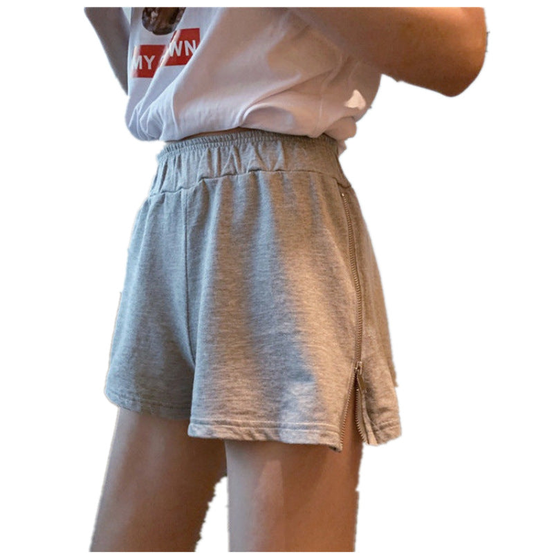 Loose high waist versatile zipper shorts