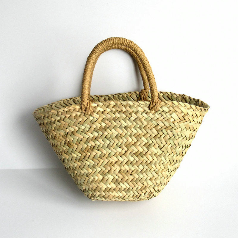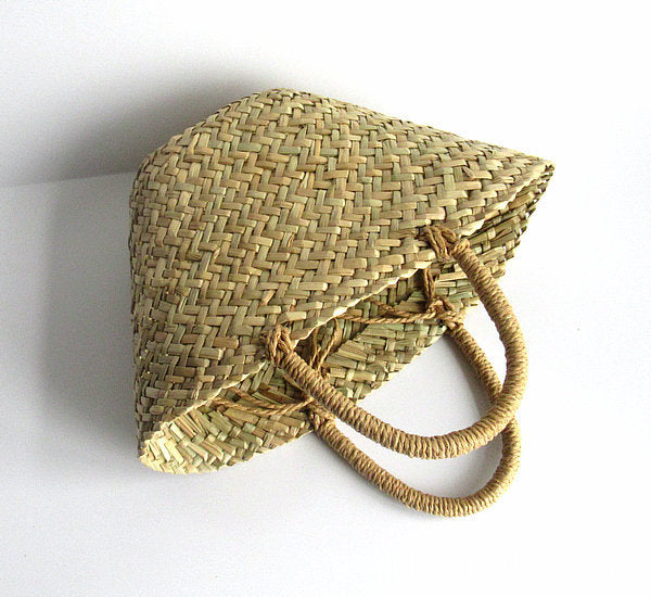 Portable Straw Bag Braided Diagonal Triangle In Grass