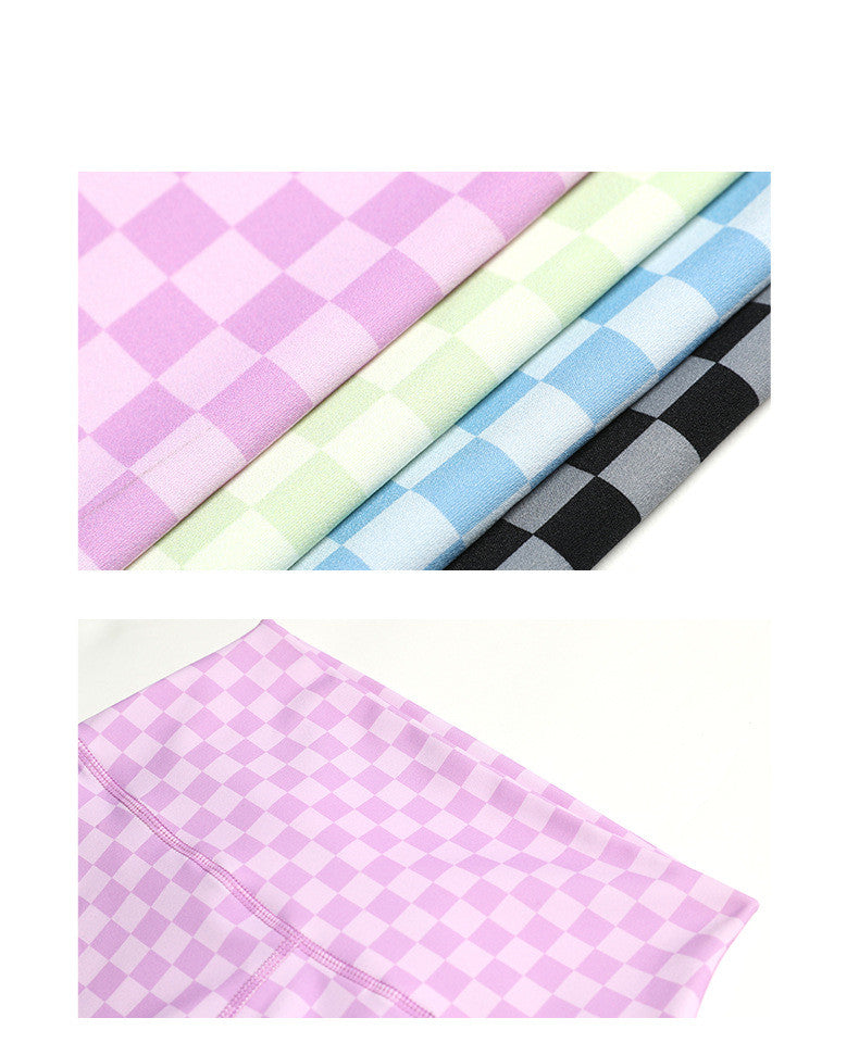 Color: purple and white grid, green and white grid, blue and white grid, black and gray grid
