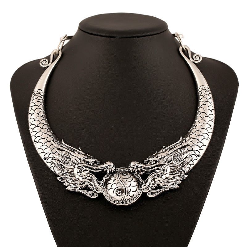 Product Name: Retro double dragon play bead necklace (collar)