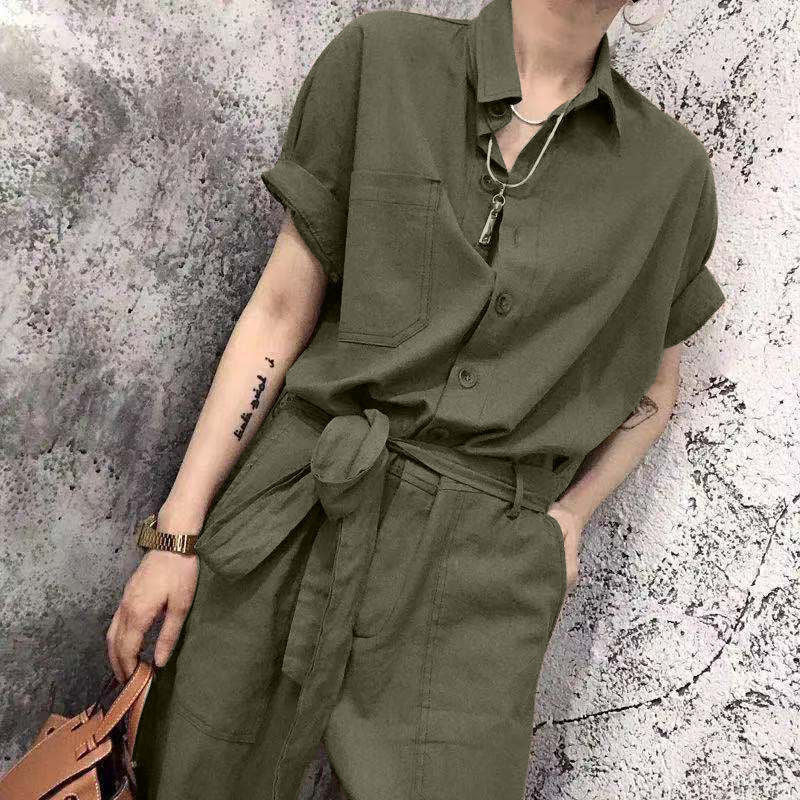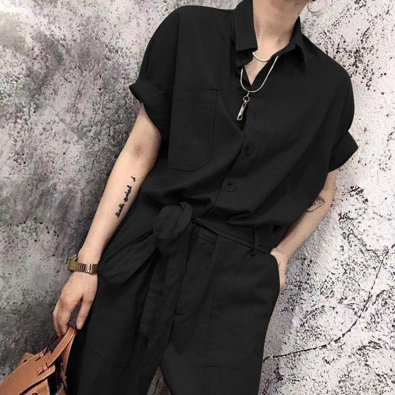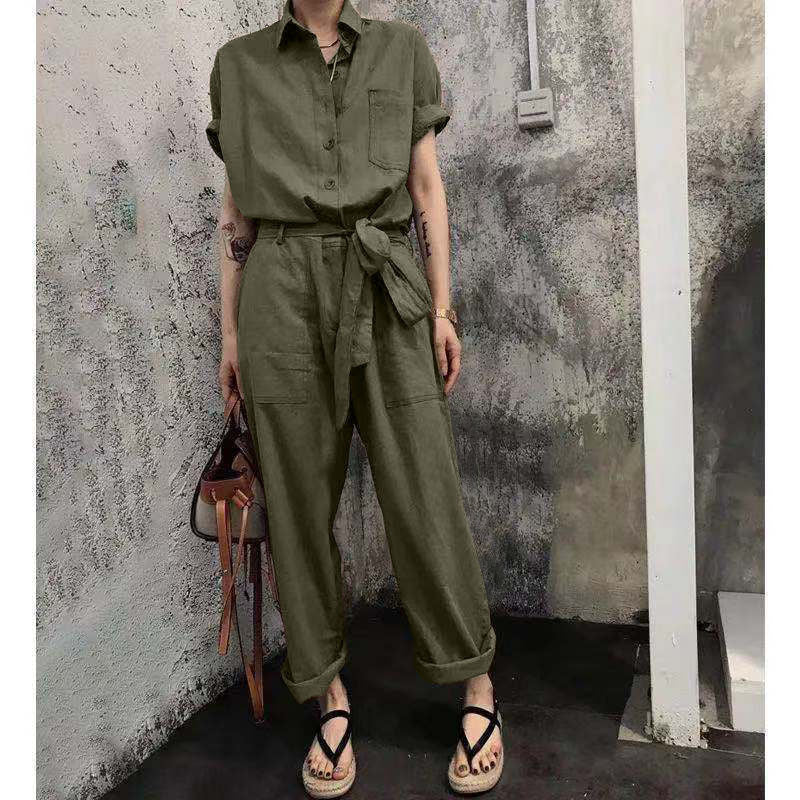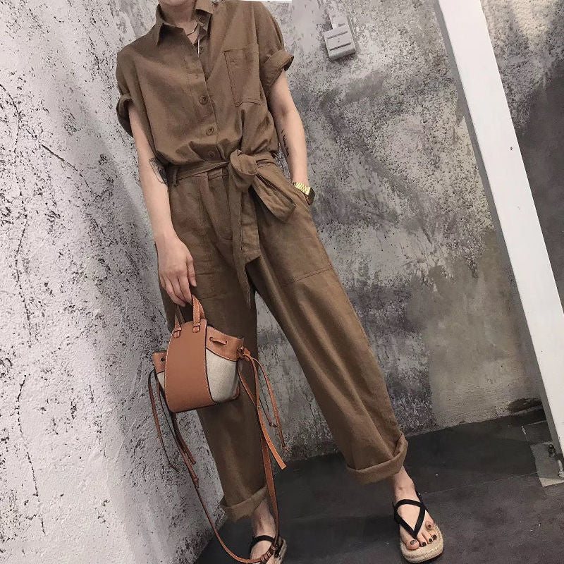 Siamese Pants Summer Lace-Up High-Waist Loose Overalls