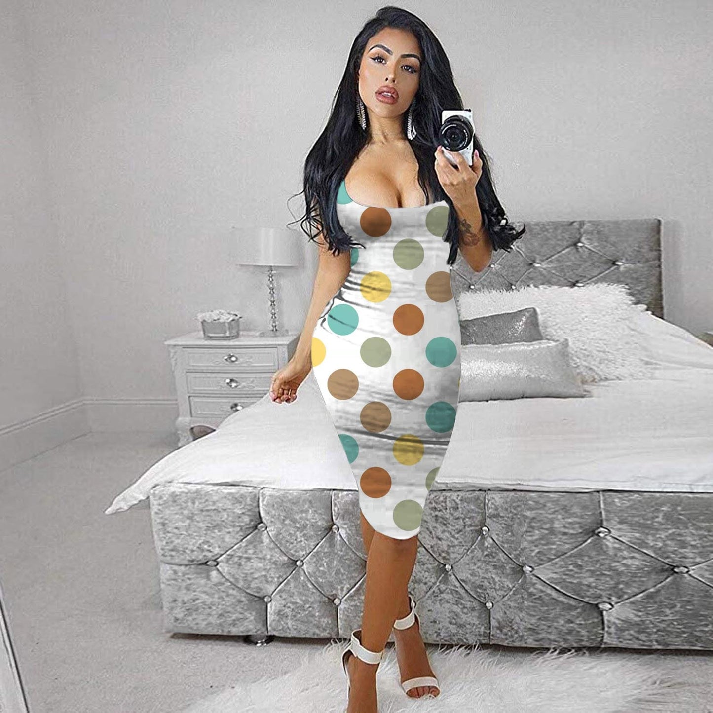 Sling Backless Ladies Long Spot Elastic Hip Tight Dress