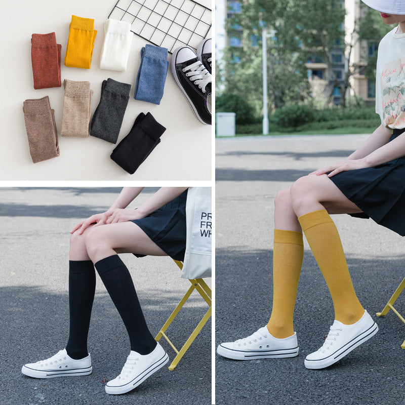 Solid Color Calf Socks Cotton Long Socks