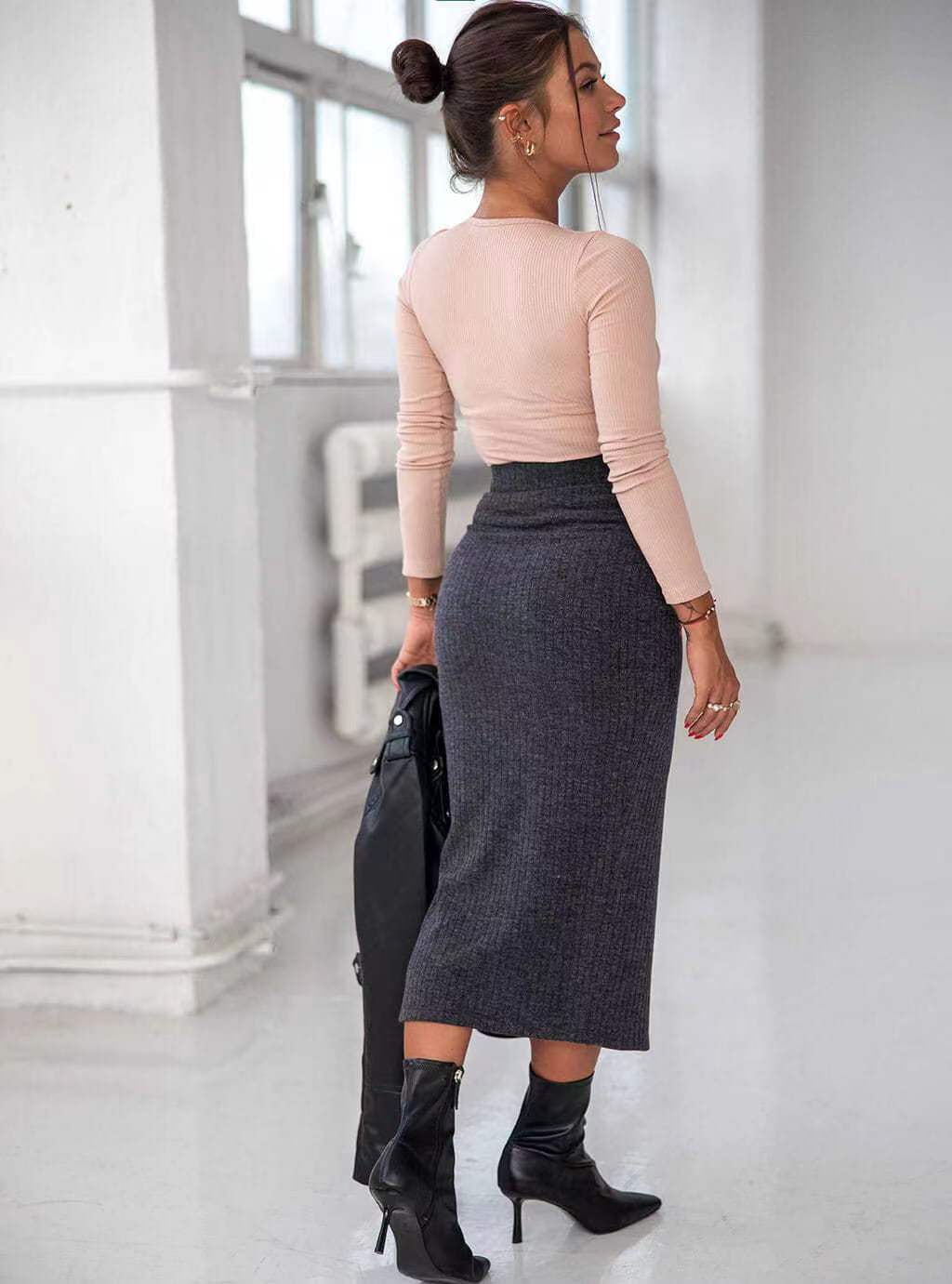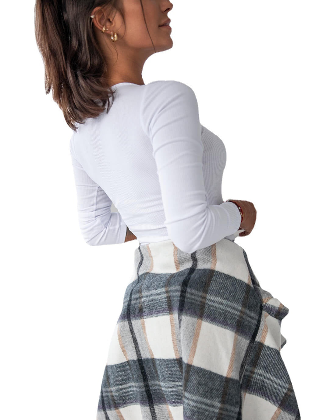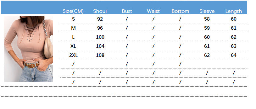 Solid Color Long Sleeve V-neck Slim Knit Sexy Lace Top Women's Clothing