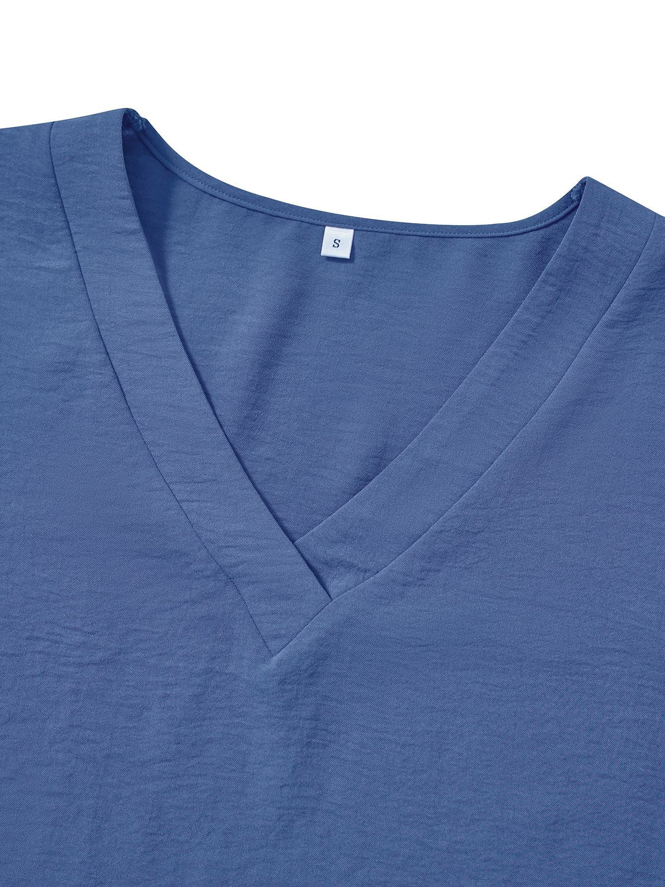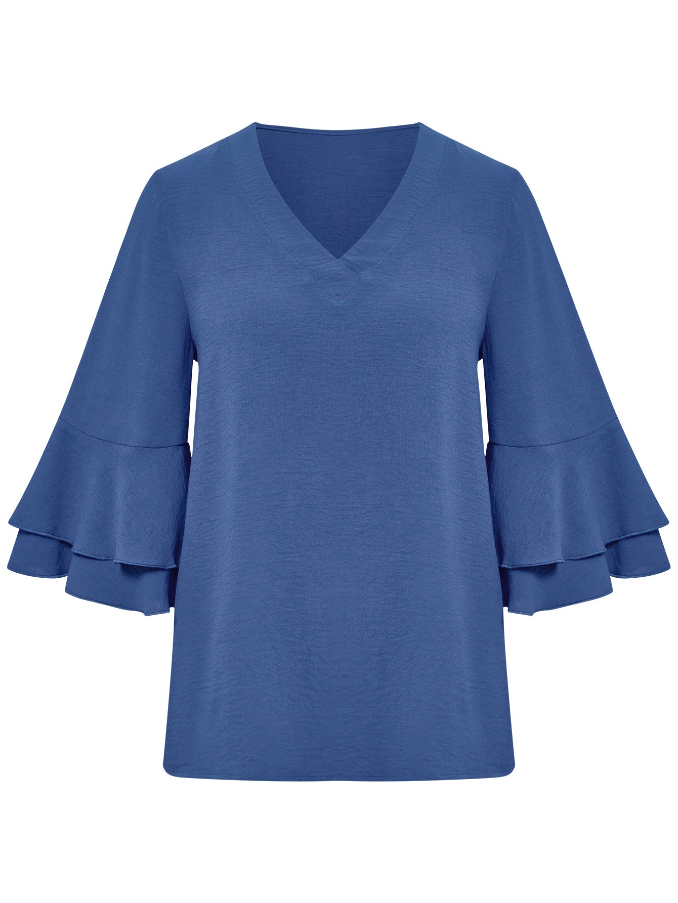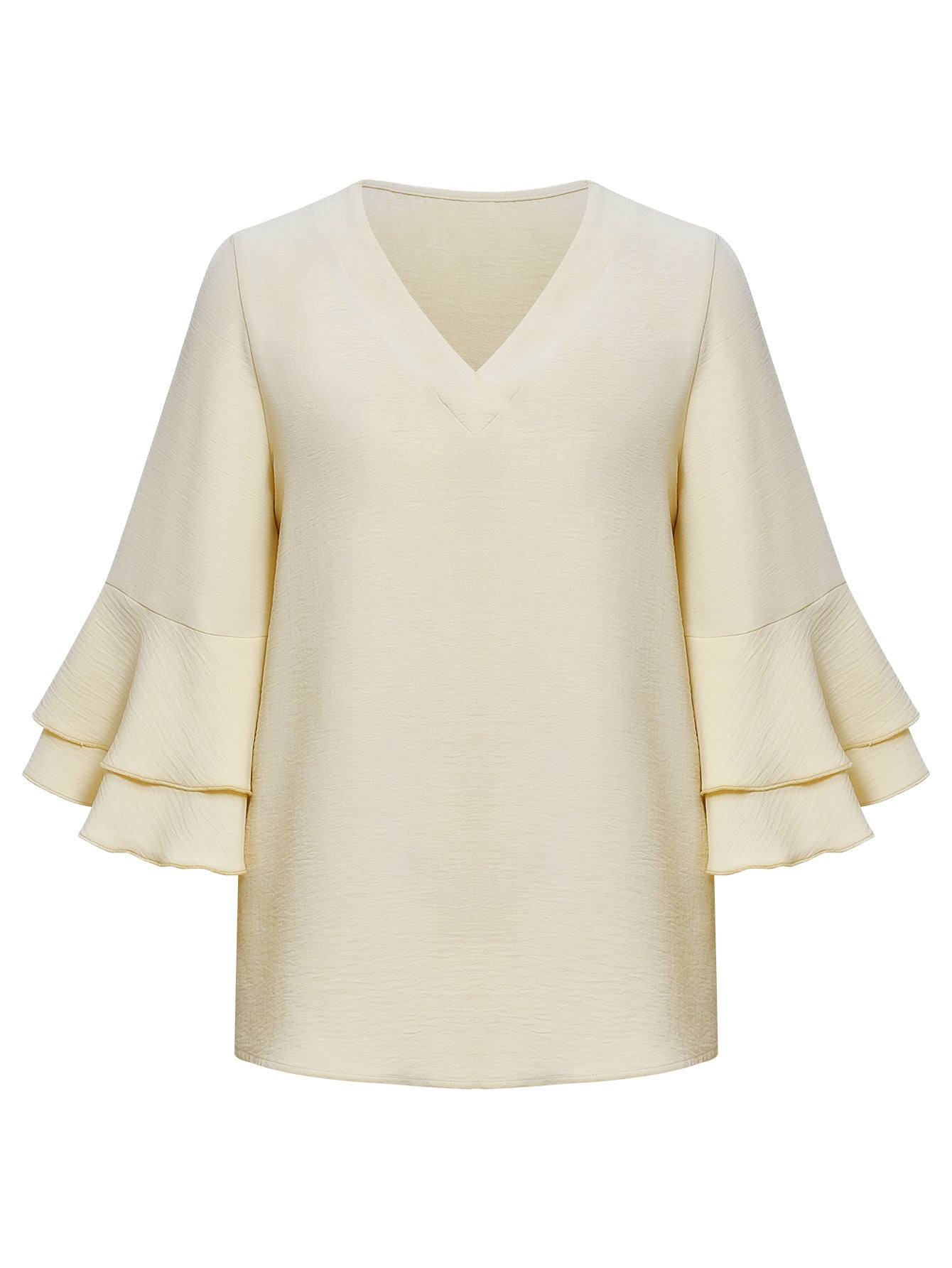 Solid Color Loose V-neck Ruffle Top Women's Clothing
