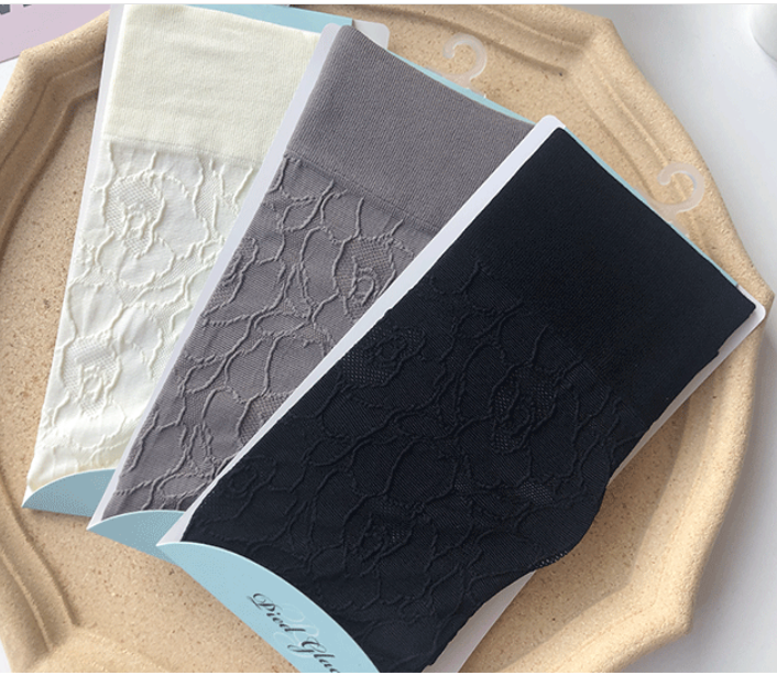 Spring And Summer Gentle Retro Dark Pattern Rose Lace Calf Socks