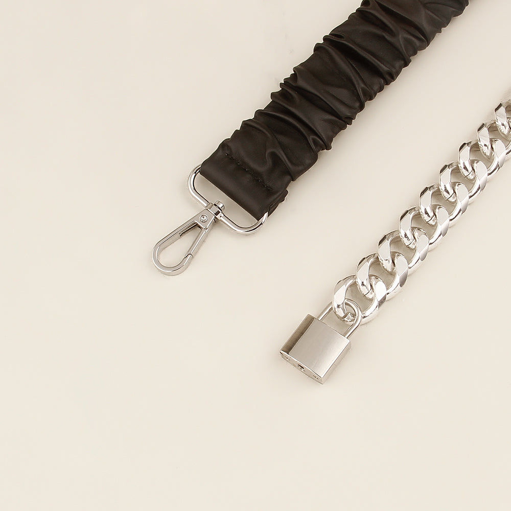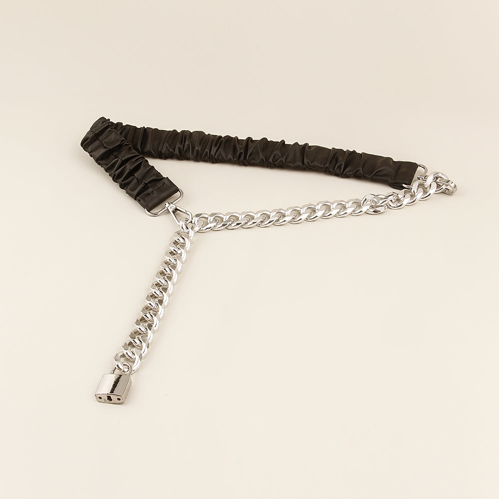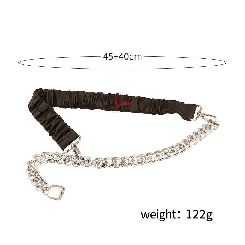 Street pats fashionable new lock head belt female chain splicing elastic waist with skirt waist seal versatile metal elastic tide