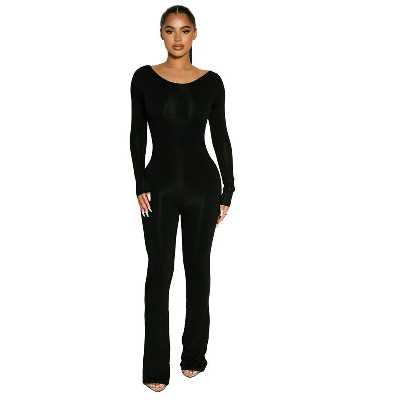Stretch Back Autumn And Winter Women's Long-sleeved Jumpsuit