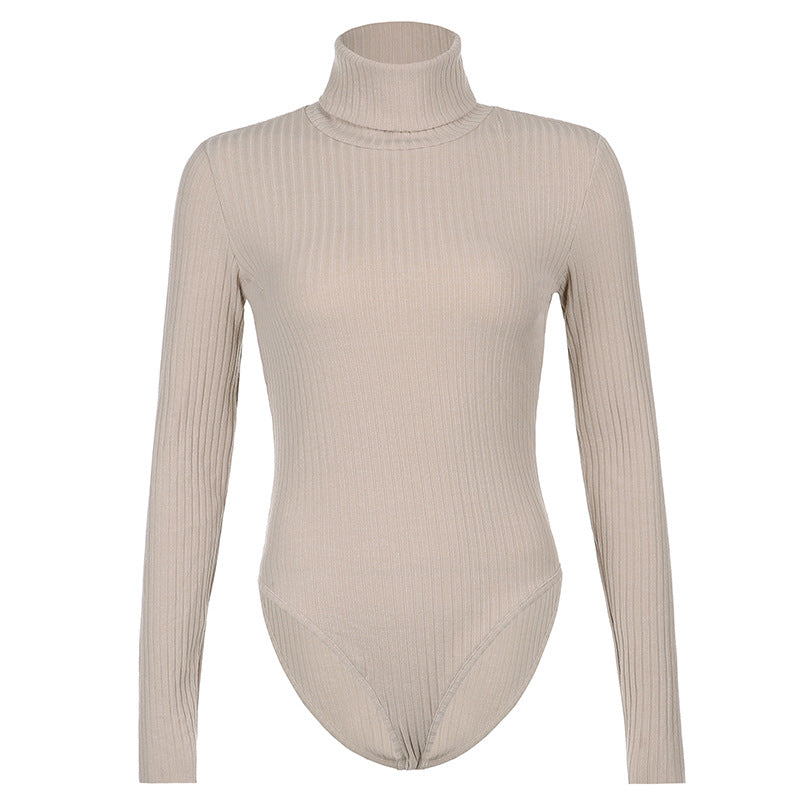 High-Neck Warm Solid Color Slim Long-Sleeved Bodysuit