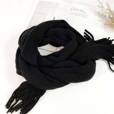 Thickened Warm Long Solid Color Tassel Knitted Wool Scarf