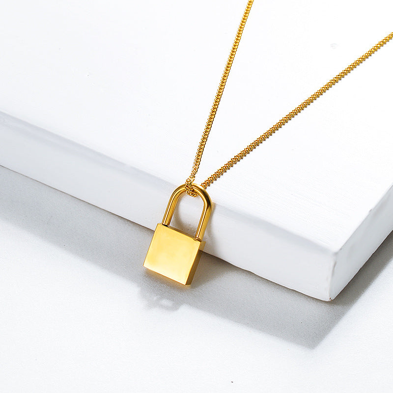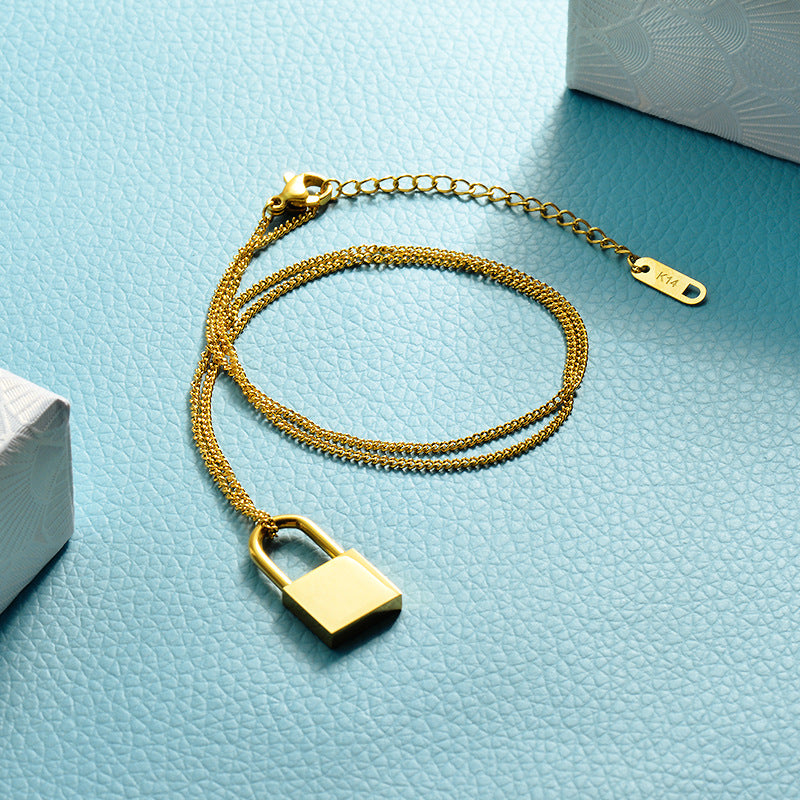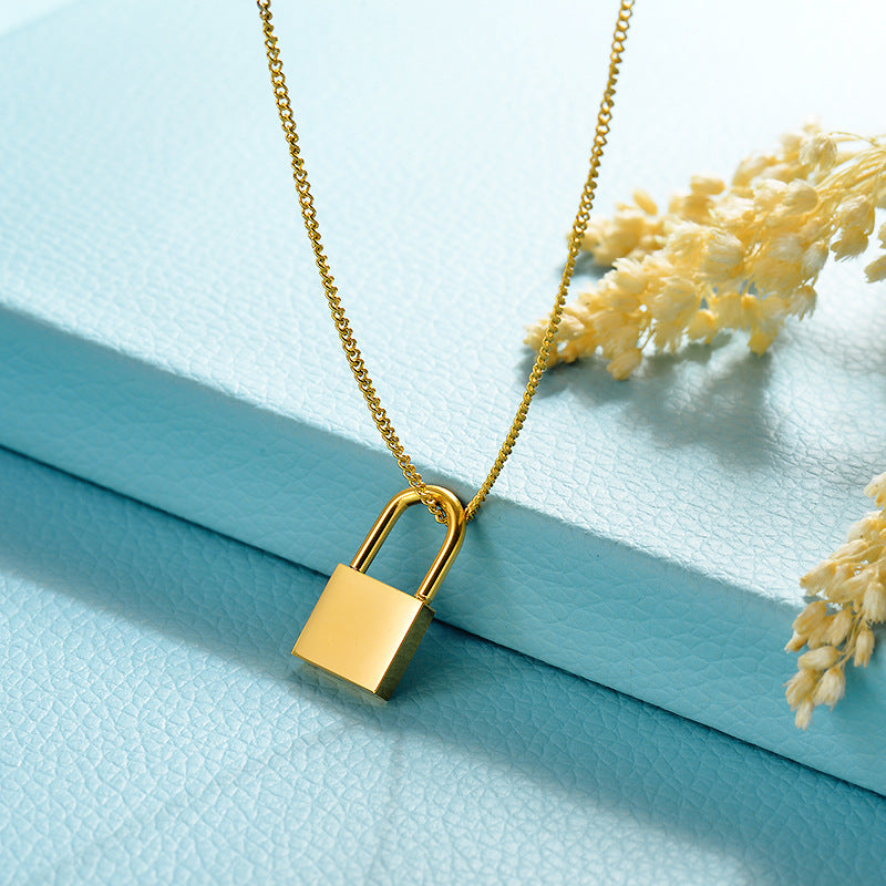 Titanium Steel Electroplated 18K Gold Lock Necklace