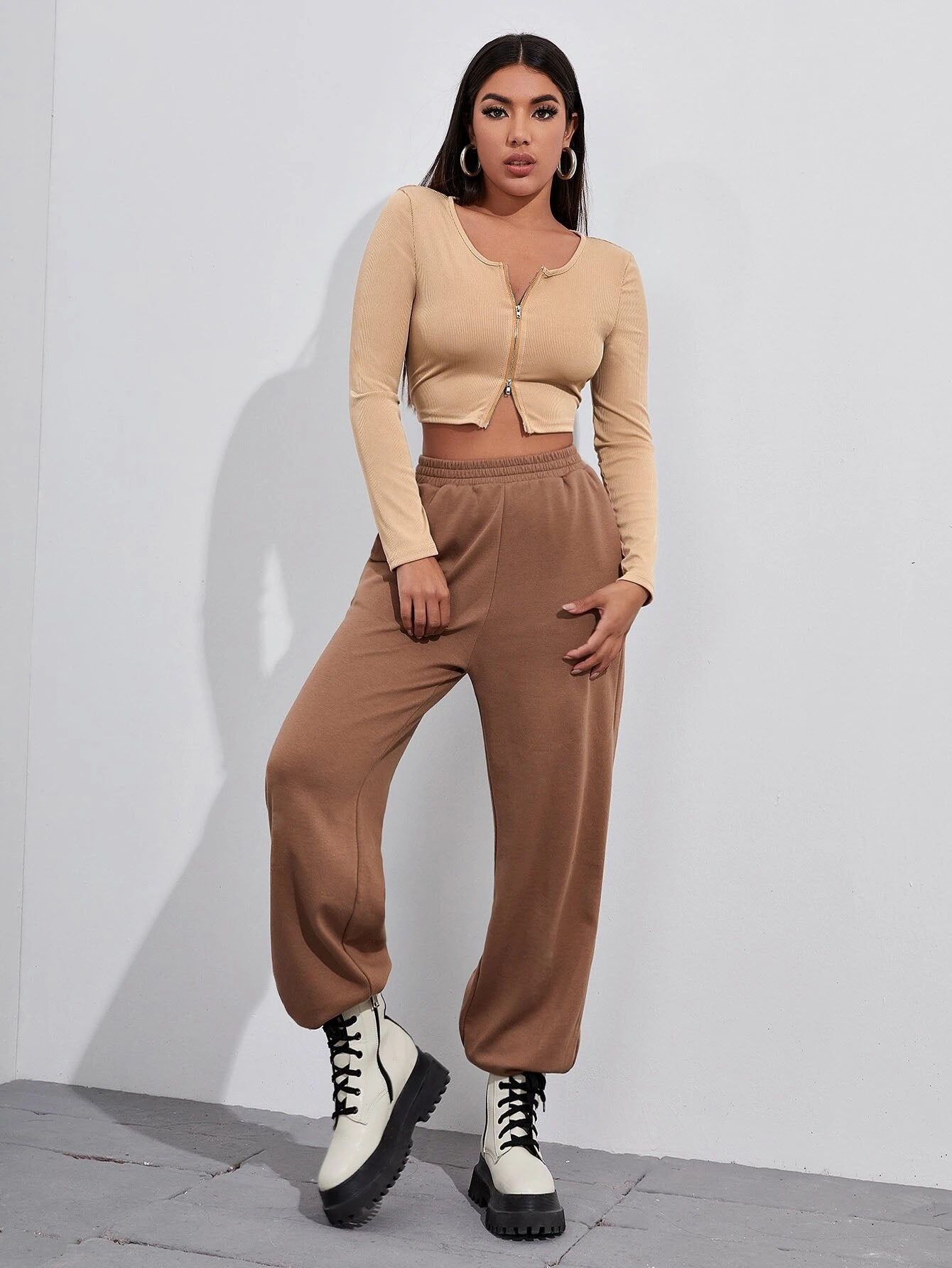 Retro Tight-Fitting Sexy Zipper Sweater Short Cardigan Long-Sleeved T-Shirt