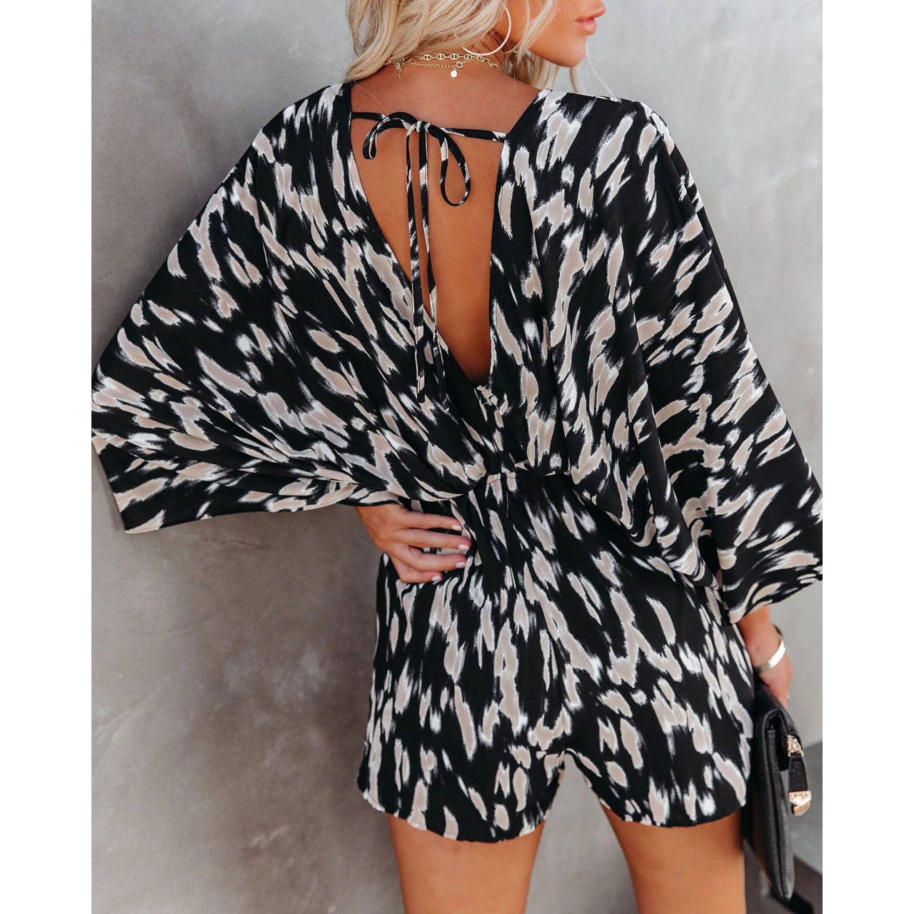 V-Neck Doll Sleeve Bodysuit Casual Loose Lace Up Jumpsuit