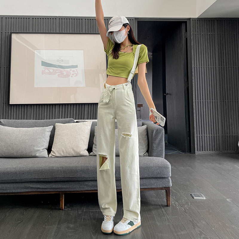 High-waisted Wide-legged Ripped Backstrap Jeans