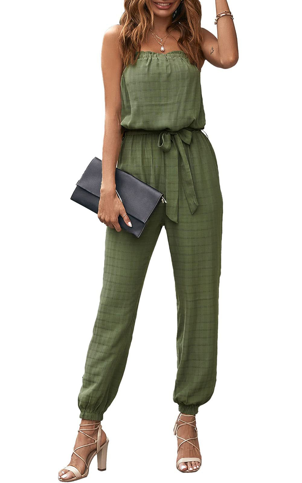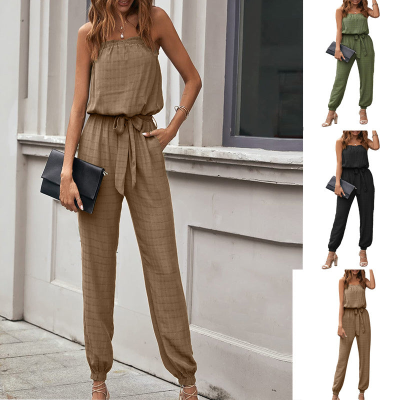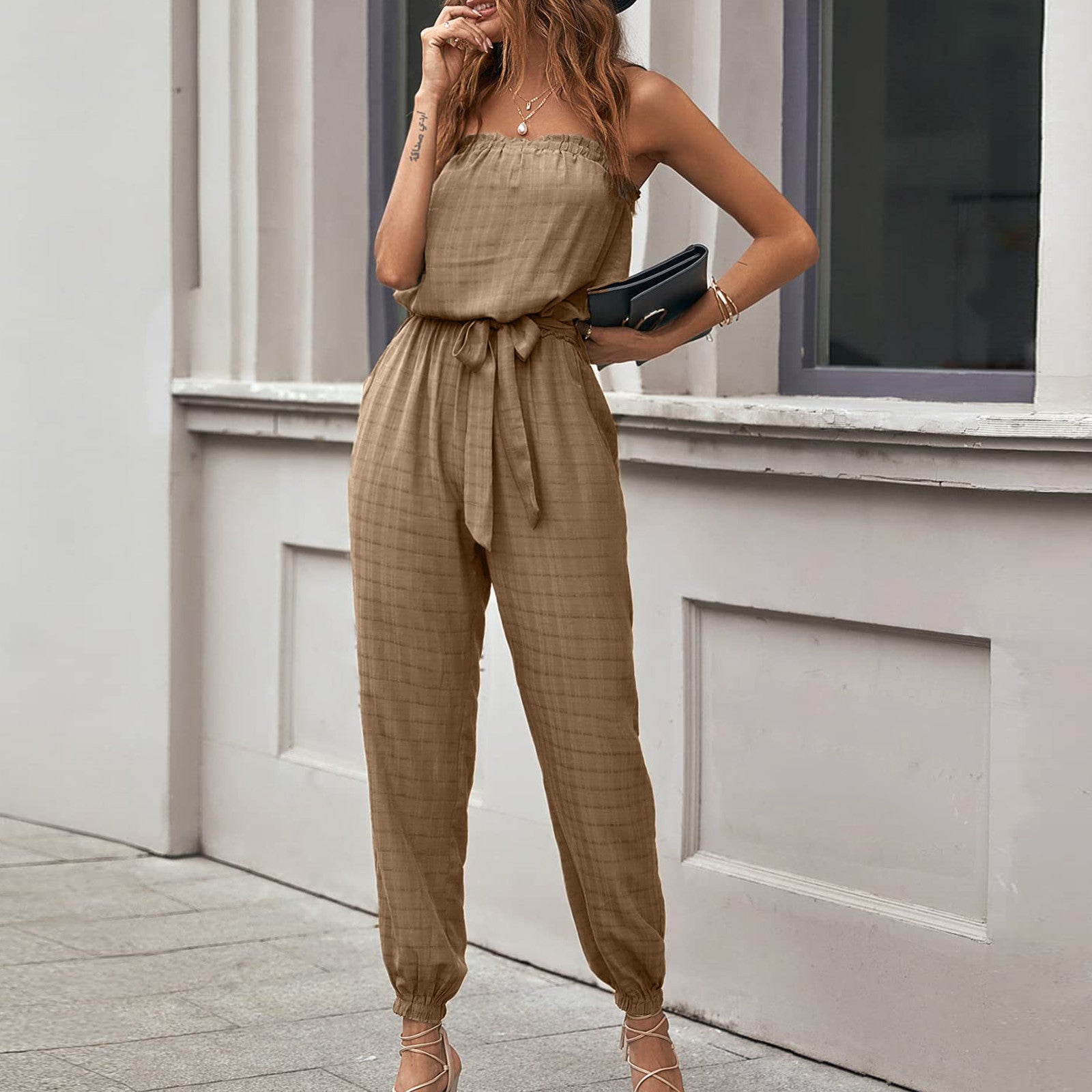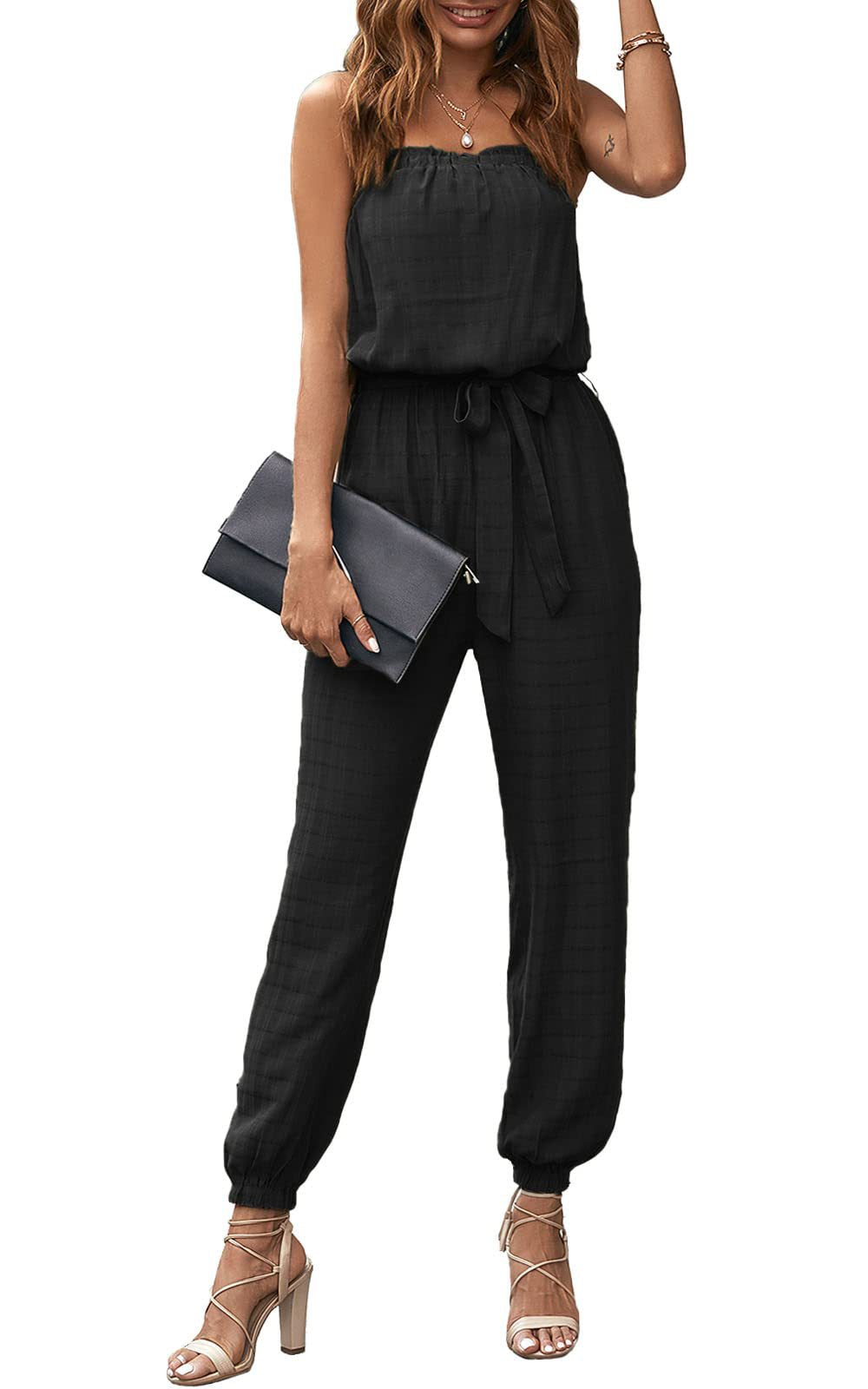 Tie-Belt Elastic Waistband Strapless Bodysuit